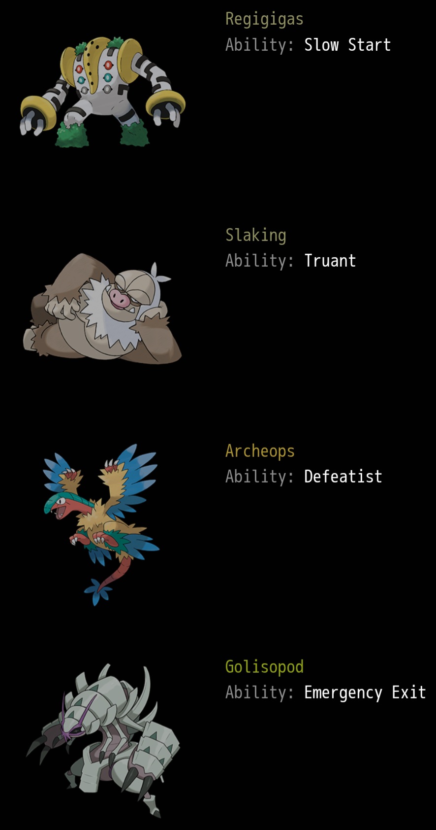 Oh also Archeops has Head Smash, coming from a 140 attack, on a Pokemon with a fantastic speed tier, the only reason Archeops can't abuse it is due to Defeatist.