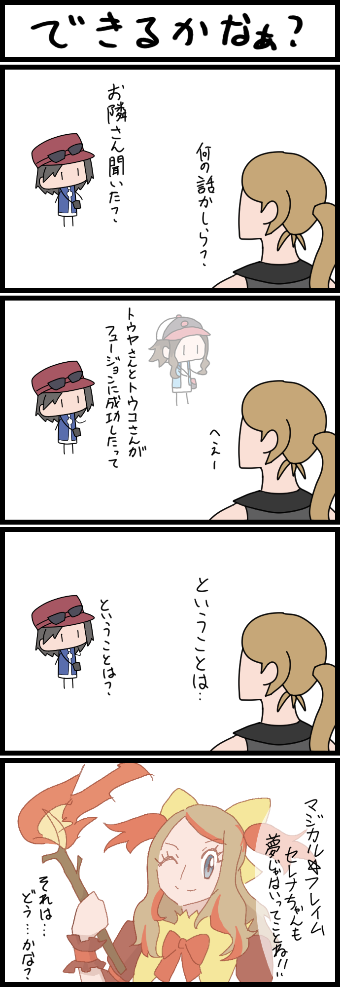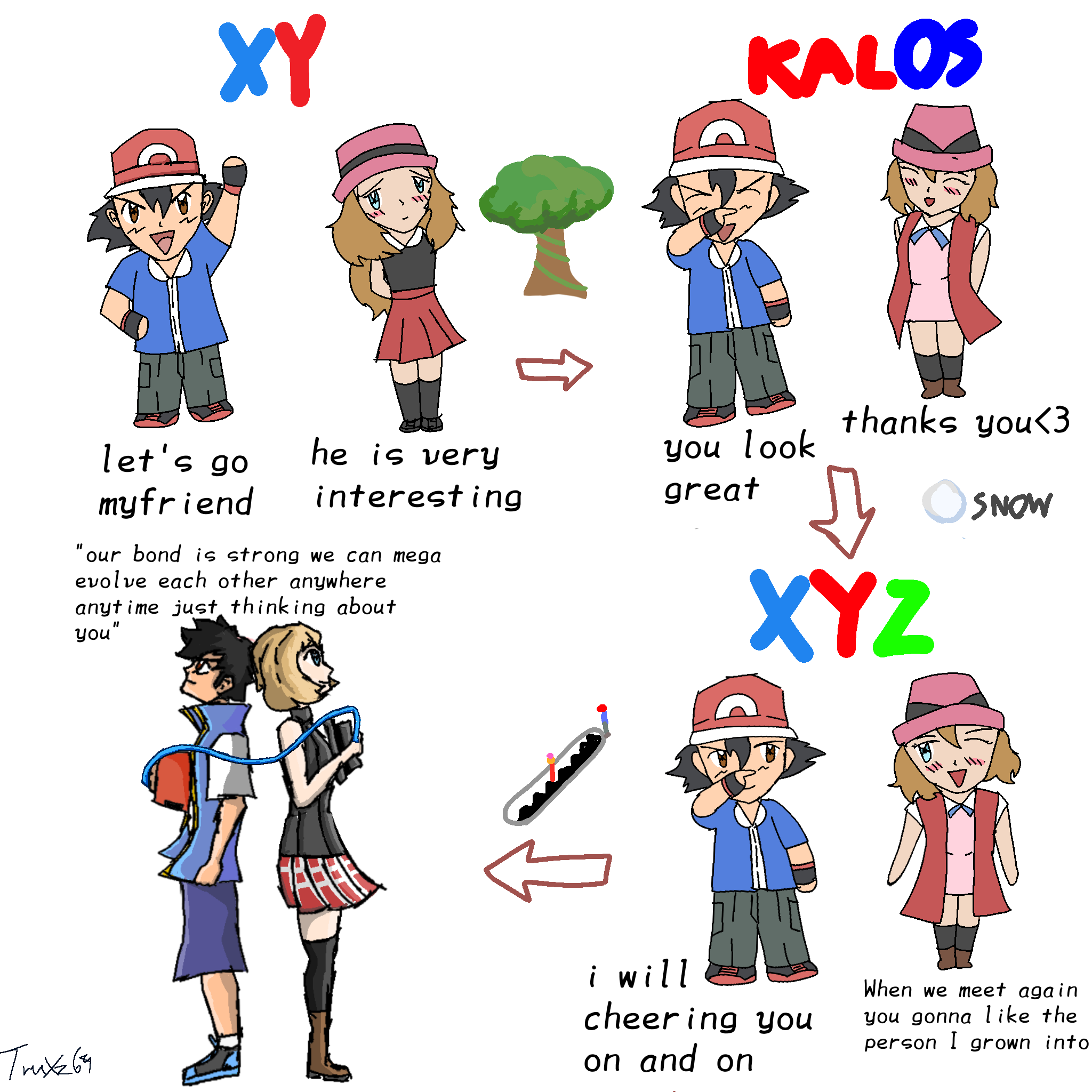 Also, this reminds me of a weird story concept that I've had for a long time but have never been able to logically formulate because I want contradictory things. I somehow both want to do a bodyswap dramedy where Serena becomes Gen 1 Ash, traveling with Brock and Misty, and Ash has to live the Rhyhorn Racer life in Kalos, but I also wanted Serena to actually just be Serena, but in Ash's Gen 1 clothes and tasked with his journey and Pokémon and friends. The closest I got to making it work was just eliminating the Ash portion of the story, creating a world where Serena (who still acts like Serena and is fully aware of Ash) just wakes up in a world where she replaces Ash completely without bodyswapping but literally just taking his place, being the daughter of Delia and dressing like Ash and having a Pikachu, where she knows something is wrong but everyone else thinks everything's normal in this world. I never could think of an ending for this version of the concept (without it all just being a long dream or a coma or something cliche), so I never wrote it, though I do remember one change to Indigo League I had was Charizard obeying sooner, just because Serena's calmer, feminine touch melted Charizard's heart faster.