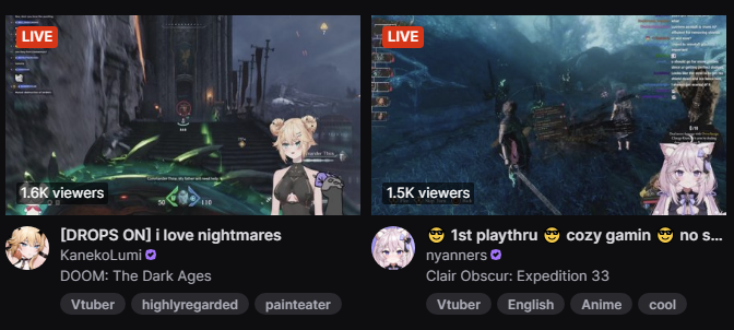 /lig/ is a thread for viewers to find, share, and discuss indie vtubers who have on average 500 viewers or more.