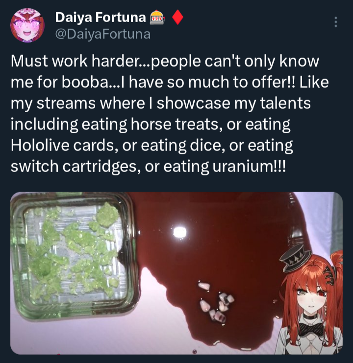 https://www.youtube.com/@DaiyaFortunahttps://x.com/DaiyaFortuna【"Toff" Toffee】 Pon tsundere, pre-debut content, likes card games, karaoke and drawing.