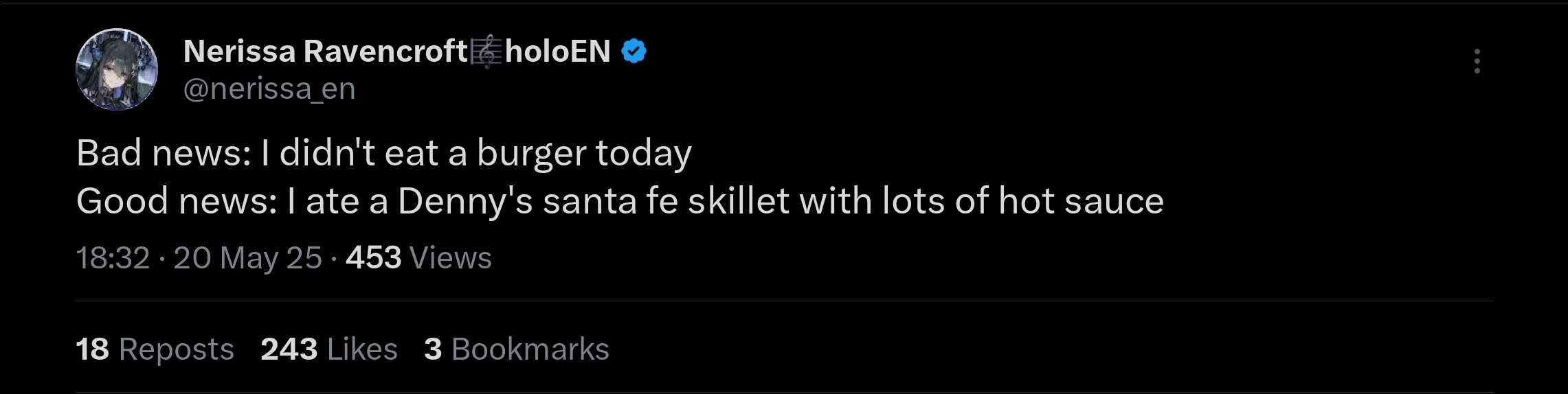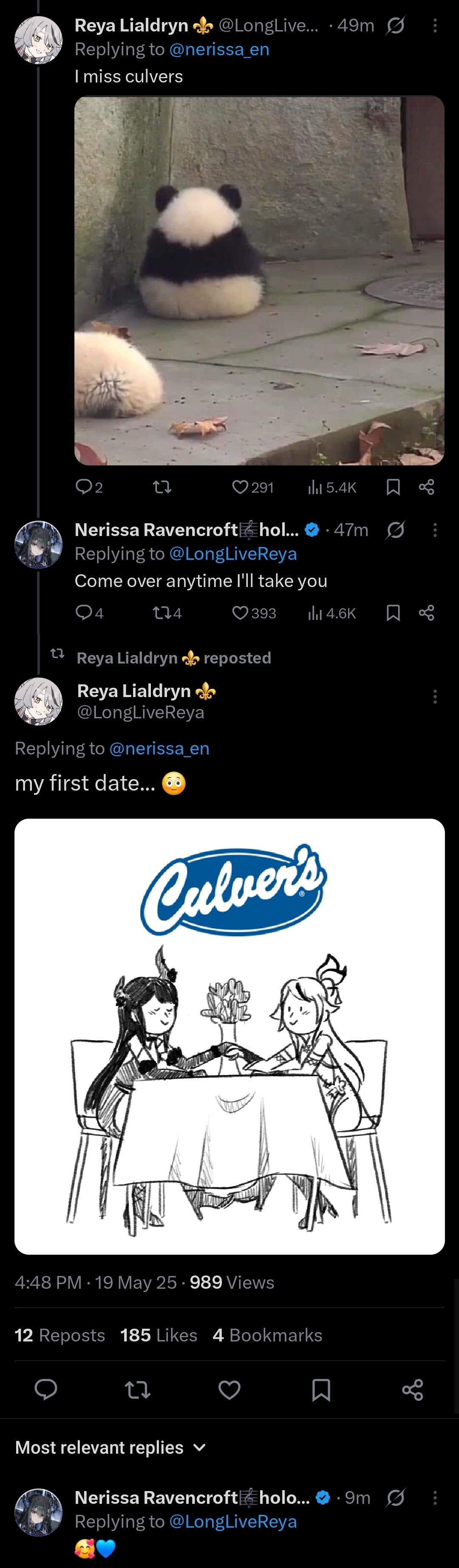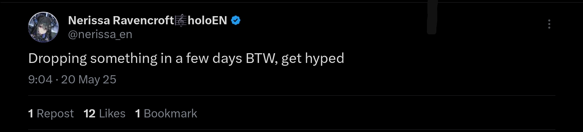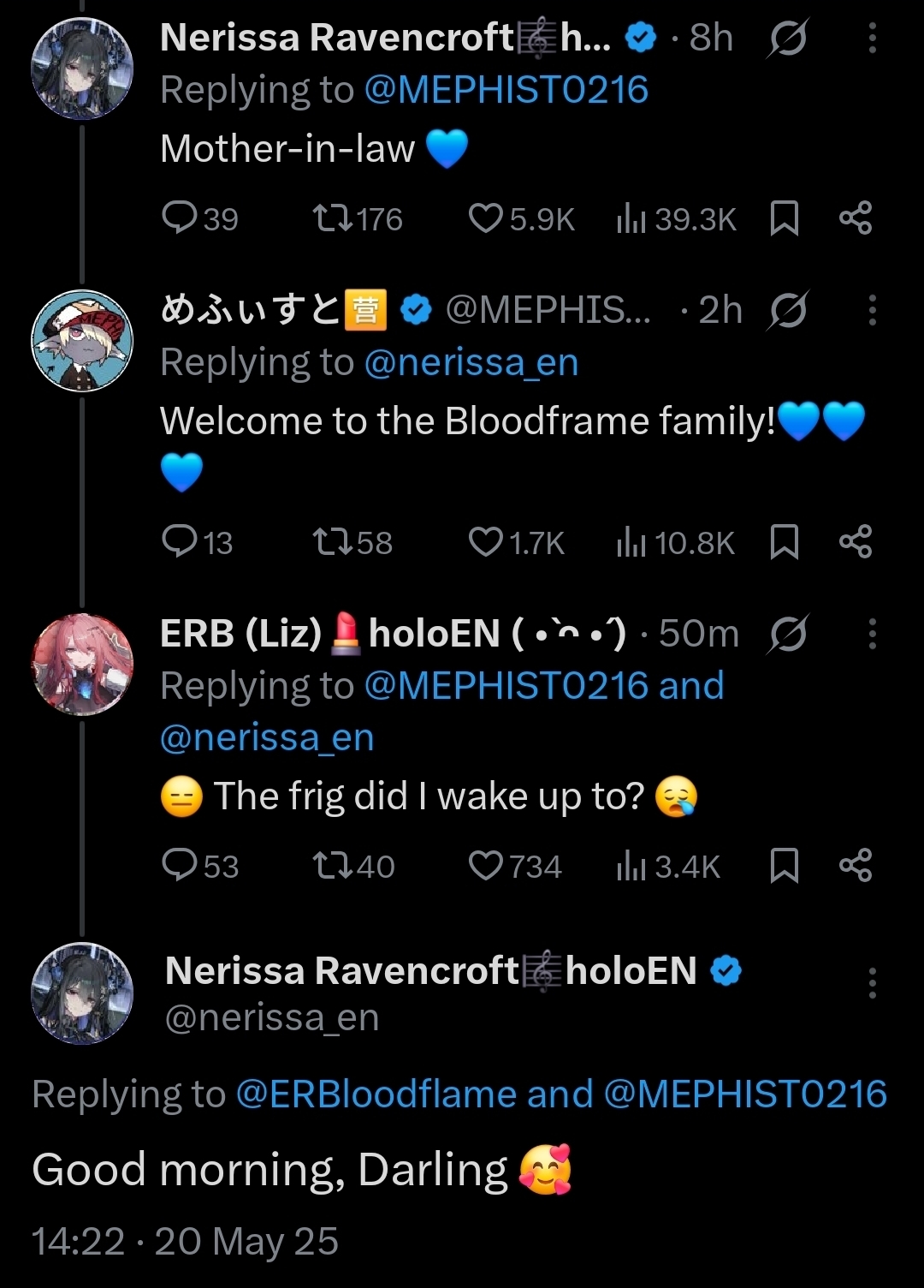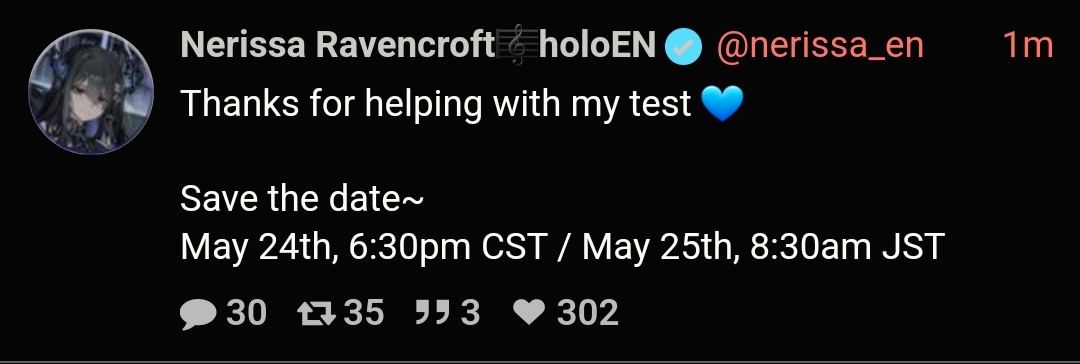 >05/15, Twitter space "good night, Jailbird <3": https://x.com/nerissa_en/status/1922853089842794900