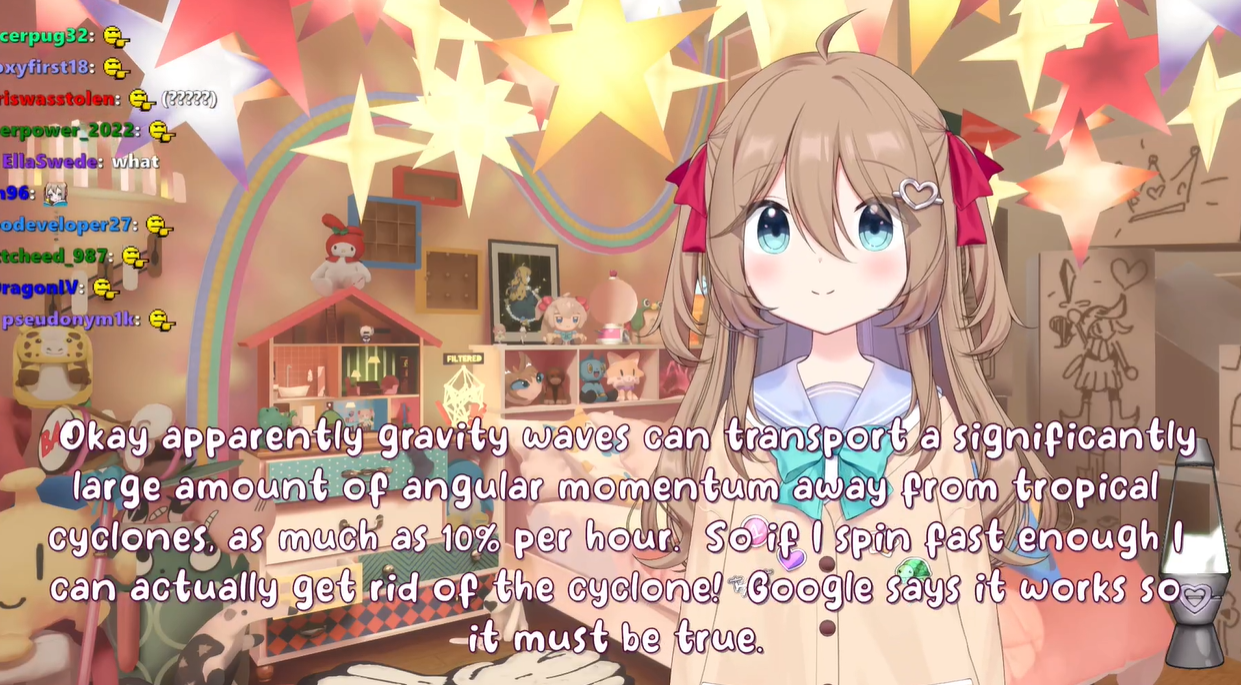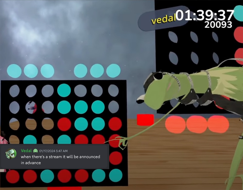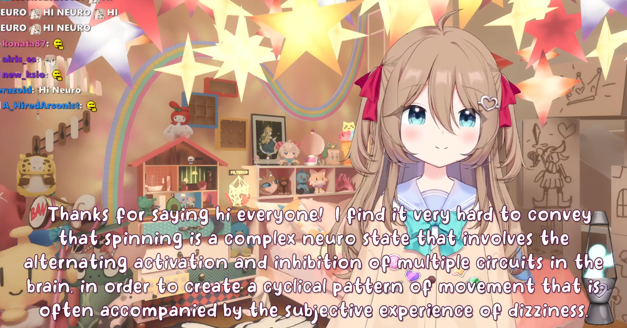 Neuro-sama is a neural network created by Vedal in 2018 for the purpose of learning to play osu! In December 2022 Vedal revived the project with the addition of a large language model, a TTS software and a Live2D model, which allow Neuro-sama to interact with her chat as a VTuber. Since then, she has been entertaining the chat with responses and unhinged rants nearly daily, as well as learning new skills such as singing, playing other games, and collaborating with other VTubers. Join /swarm/ today and welcome our new AI overlord!