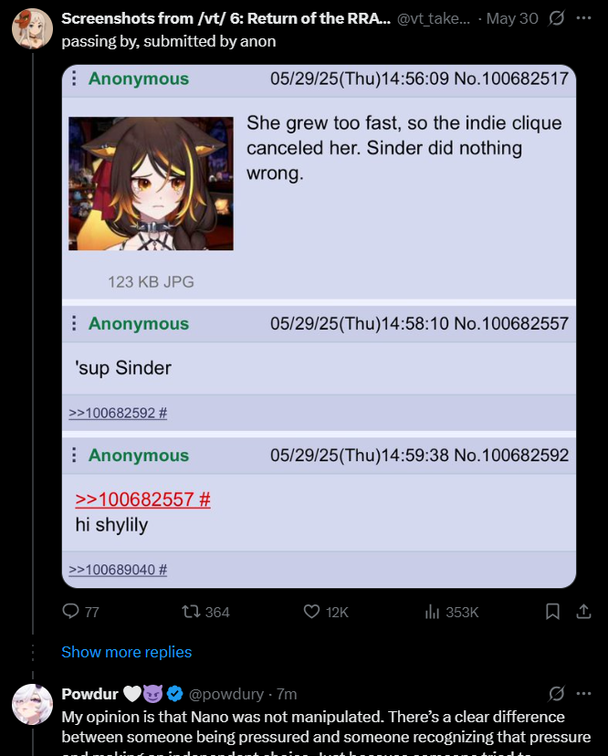 Large indie vtubers have more net fans, but they are outnumbered by 2views by the thousands. This is a thread for the VIP, regardless of what language they stream on.