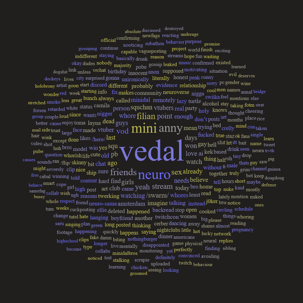 Neuro-sama is a neural network created by Vedal in 2018 for the purpose of learning to play osu! In December 2022 Vedal revived the project with the addition of a large language model, a TTS software and a Live2D model, which allow Neuro-sama to interact with her chat as a VTuber. Since then, she has been entertaining the chat with responses and unhinged rants nearly daily, as well as learning new skills such as singing, playing other games, and collaborating with other VTubers. Join /swarm/ today and welcome our new AI overlord!