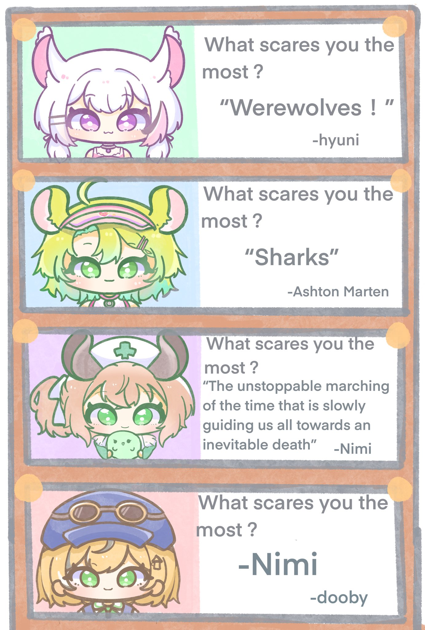>Note that discussion about past-Ame is generally discouraged, the scope of this thread starts with Ame, moving forward from there.>Respect for other Holos and the rules that govern their respective threads is also important, so only if and when on topic, focus on one persona and avoid blending references.