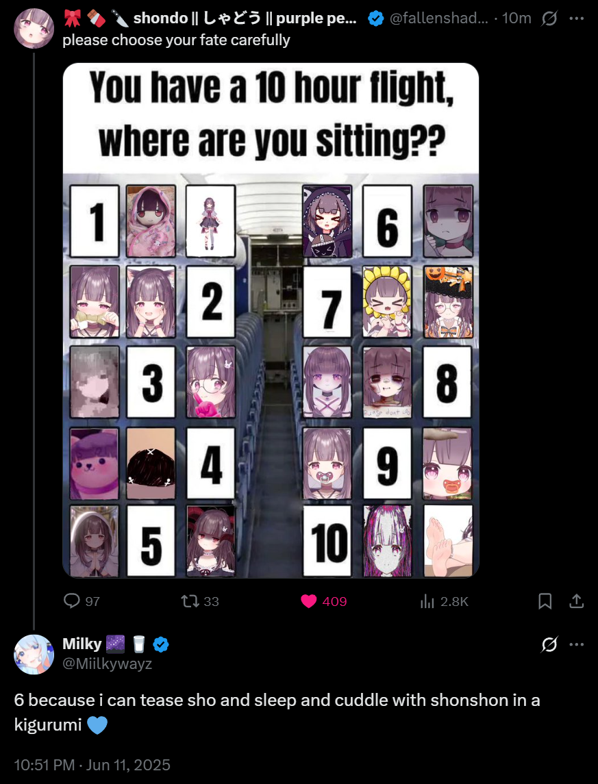 Large indie vtubers have more net fans, but they are outnumbered by 2views by the thousands. This is a thread for the VIP, regardless of what language they stream on.