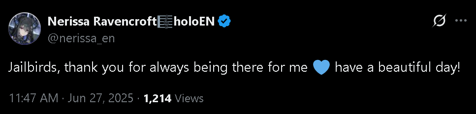 06/23, Twitter space hiya darlings <3: https://x.com/nerissa_en/status/1937352839292158244