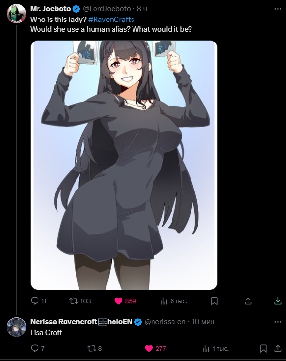Art tags: #RavenCrafts on Twitter (Lewds: #depravencrafts on Twitter); RavenCrafts, Nerissa Ravencroft or ネリッサ・レイヴンクロフト on pixiv