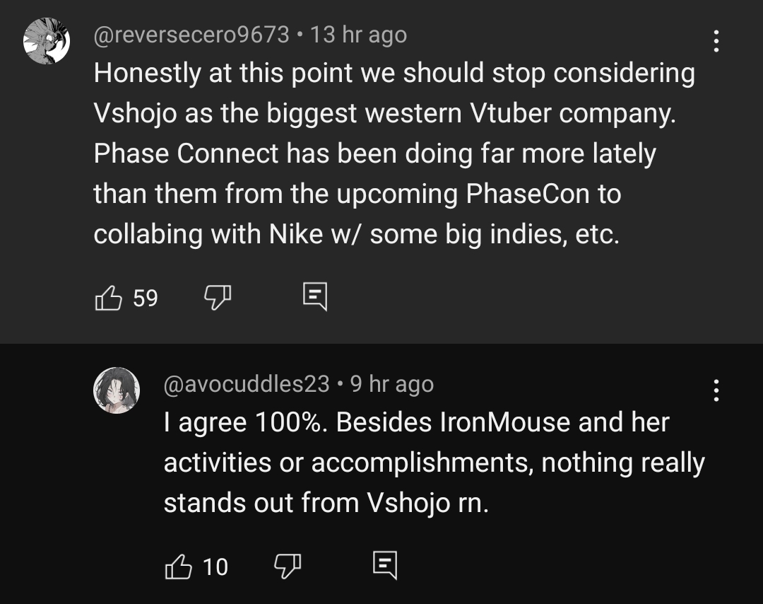This is truly momentous. How did she so casually ascend into the top 3 biggest EN vtubers on Earth in just a few months of joining Phase? How is everyone else in Phase lagging so far behind her? And yet her popularity is so subtle and almost a whisper. If she keeps this up, she is objectively among the top 3 biggest EN vtubers on planet Earth, but it's almost like you wouldn't really know it from the strange lack of matching hype and chatter. I've never known an ultra popular person by the numbers to also be someone that people didn't really talk about much. It's so mysterious. It's so weird!