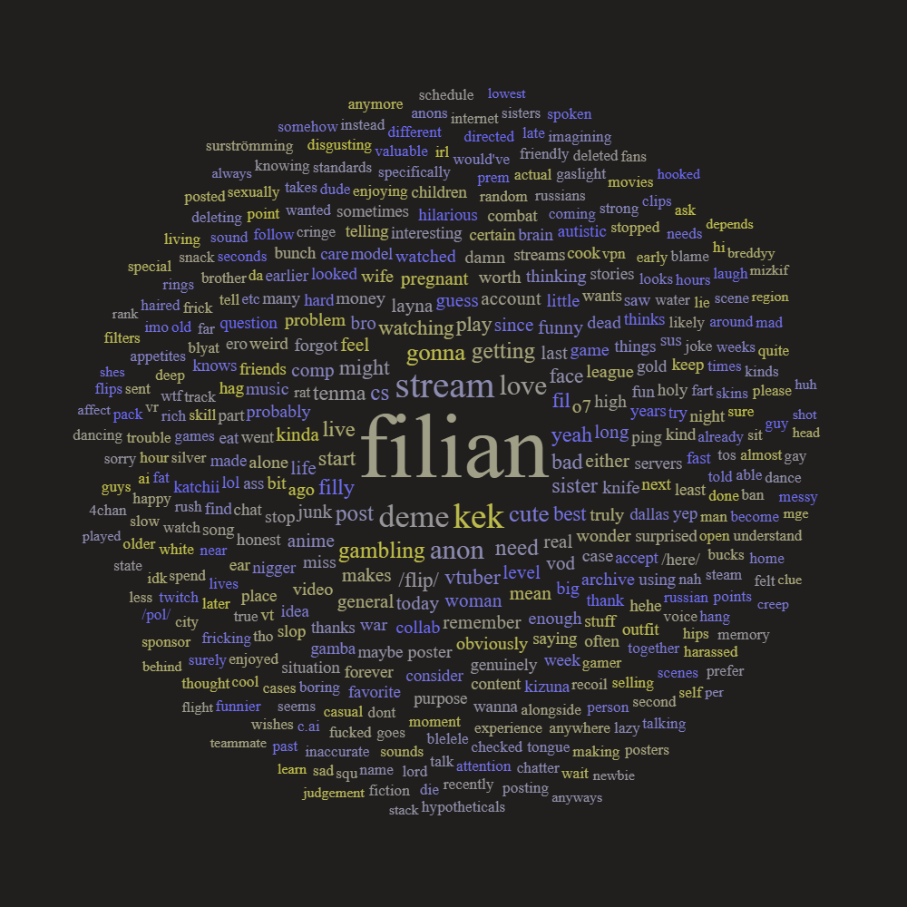 Another thing is that she genuinely seems to have trouble trusting people/being intimate, especially physically. On this I have to take her for her word, but in that QnA thing from 2023 she said she is still a kiss virgin and then remarked she can't even bring herself to hug people because she's genuinely scared of that kind of intimacy. Similarly she mentioned not even telling her family or irls about what she does saying she "doesn't have anyone she super duper trusts like that". Maybe this got better though over time, but she seems like an incredibly walled off, anxious person the ways she speaks about these things.