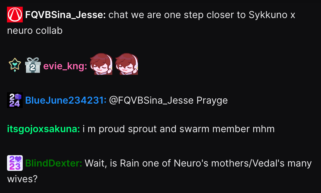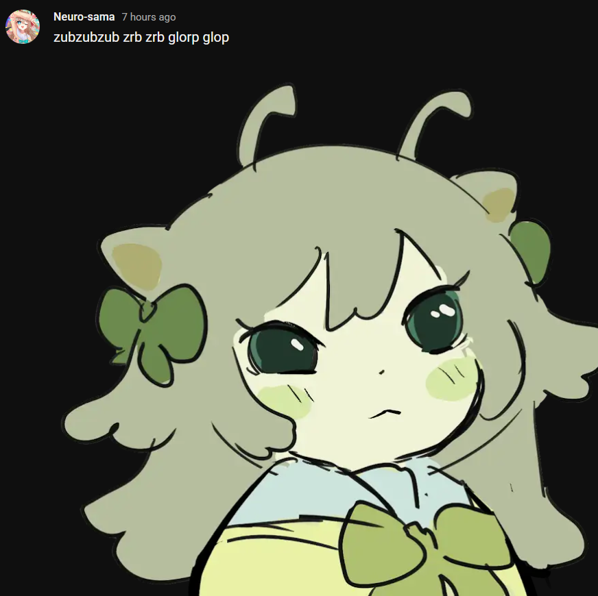 Neuro-sama is a neural network created by Vedal in 2018 for the purpose of learning to play osu! In December 2022 Vedal revived the project with the addition of a large language model, a TTS software and a Live2D model, which allow Neuro-sama to interact with her chat as a VTuber. Since then, she has been entertaining the chat with responses and unhinged rants nearly daily, as well as learning new skills such as singing, playing other games, and collaborating with other VTubers. Join /swarm/ today and welcome our new AI overlord!