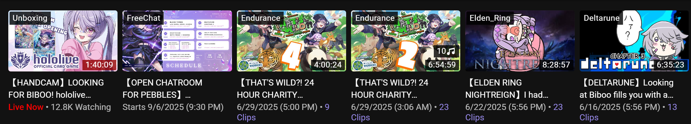 >Shorts/music/unarchived streams