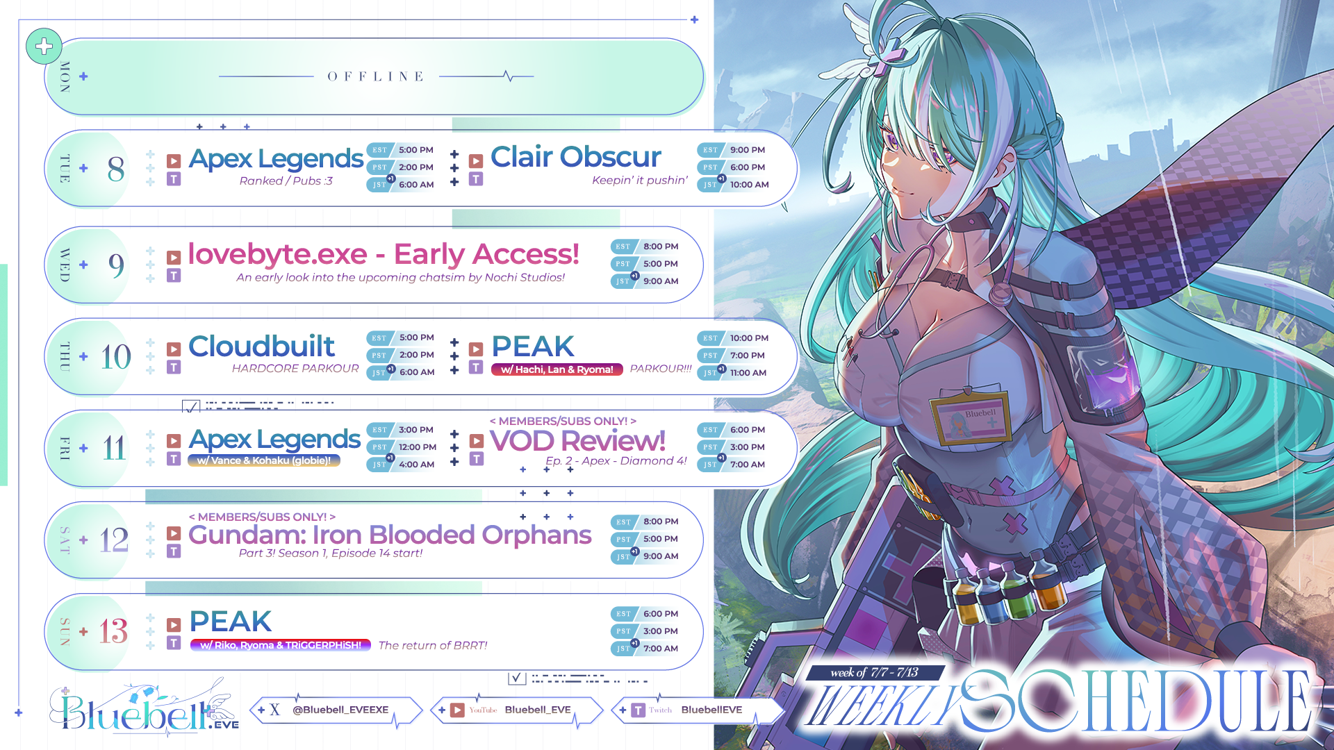 https://www.youtube.com/@Bluebell_EVE | https://twitter.com/Bluebell_EVEEXE | https://www.twitch.tv/BluebellEVE