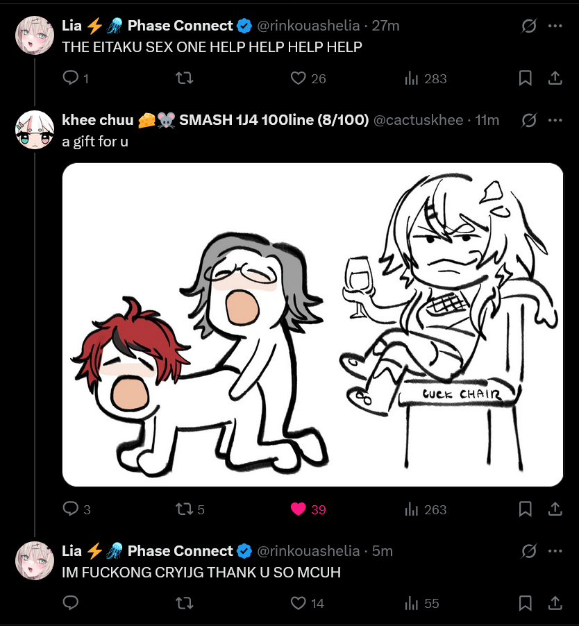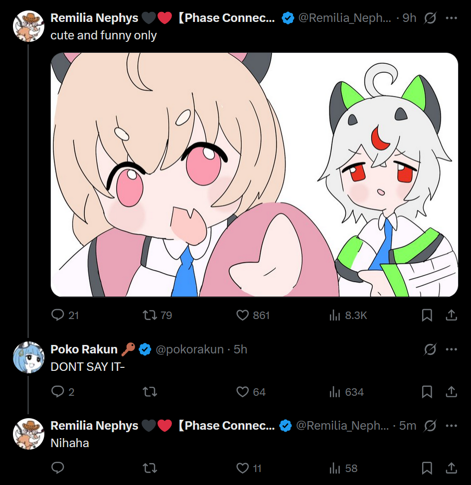 [474 / 97 / 1] 273KiB, 1440x2104, GvNi8ckWgAANonW.jpg View SameGoogleImgOpsiqdbSauceNAO Thread Reply Original Report Media View Same Google ImgOps iqdb SauceNAO Download /pcg/ - Phase Connect General Anonymous Mon 07 Jul 2025 00:16:03 No.102016941 View ViewReplyOriginalReport Quoted By: >>102020209 >>102020870 ▼ Phase Connect LinksOfficial Website: https://phase-connect.comOfficial Schedule: https://schedule.phase-connect.comOfficial Twitter: https://twitter.com/PhaseConnect | https://twitter.com/PhaseConnectJPOfficial Character References: https://rentry.org/pcgreferencesOfficial Twitch Archive Channels: https://rentry.org/pcgtwitcharchiveUnofficial Phase Connect Archives: https://rentry.org/pcgunofficialarchive––––––––––––––––––––––––––––––––––▼ Lia 鈴香アシェリア (EN)https://twitter.com/rinkouashelia | https://youtube.com/RinkouAshelia | https://twitch.tv/asheliarinkou▼ Utatane Nasa 転寝ナサ (JP)https://twitter.com/UtataneNasa | https://youtube.com/UtataneNasa | https://twitch.tv/utatanenasa▼ Hakushika Iori 白鹿いおり (JP + EN)https://twitter.com/hakushikaiori | https://youtube.com/HakushikaIori | https://twitch.tv/iorihakushika▼ Fujikura Uruka 藤倉ウルカ (EN)https://twitter.com/fujikurauruka | https://youtube.com/FujikuraUruka | https://twitch.tv/fujikurauruka▼ Shisui Michiru 紫翠みちる (JP)https://twitter.com/shisuimichiru | https://youtube.com/ShisuiMichiru | https://twitch.tv/michiru_shisui▼ Tenma Maemi 天満マエミ (EN + JP)https://twitter.com/tenmamaemi | https://youtube.com/TenmaMaemi | https://twitch.tv/tenma▼ Pipkin Pippa ピップキン・ピッパ (EN)https://twitter.com/pipkinpippa | https://youtube.com/PipkinPippa| https://twitch.tv/pippa––––––––––––––––––––––––––––––––––▼ Kaneko Lumi 金子瑠美 (EN)https://twitter.com/kaneko_lumi | https://youtube.com/KanekoLumi | https://twitch.tv/kanekolumi▼ Fuura Yuri ふうら百合 (EN) [Terminated]Archive: https://youtube.com/@TheNationalFuuraYuriArchive▼ Dizzy Dokuro 髑髏ディズィー (EN)https://twitter.com/dizzydokuro | https://youtube.com/@dizzydokuro | https://twitch.tv/dizzydokuro▼ Jelly Hoshiumi 星海ジェリー (EN)https://twitter.com/jellyhoshiumi | https://youtube.com/@jellyhoshiumi | https://twitch.tv/jellyhoshiumi▼ Ember Amane 天音エンバー (EN)https://twitter.com/emberamane | https://youtube.com/@EmberAmane | https://twitch.tv/emberamane▼ Clio Aite クリオ・アイテ (EN)https://twitter.com/ClioAite | https://youtube.com/@ClioAite | https://twitch.tv/clioaite▼ MariMari_EN マリマリ (EN)https://twitter.com/MARIMARI_EN | https://youtube.com/@MARIMARI_EN | https://twitch.tv/marimari_en▼ Eepy Sleepy イーピー・スリーピー (EN)https://twitter.com/EepySleepyCh | https://www.youtube.com/@EepySleepyCh | https://twitch.tv/EepySleepy––––––––––––––––––––––––––––––––––▼ Remilia Nephys レミリア・ネフィス (EN)https://twitter.com/Remilia_Nephys | https://youtube.com/RemiliaNephys | https://twitch.tv/remilianephys▼ Chisaka Airi 千坂アイリ (EN)https://twitter.com/ChisakaAiri | https://youtube.com/ChisakaAiri | https://twitch.tv/chisakaairi▼ Amanogawa Shiina 天ノ川しいな (EN)https://twitter.com/AmanogawaShiina | https://youtube.com/AmanogawaShiina | https://twitch.tv/amanogawashiina▼ Himemiya Rie 姫宮りえ (EN)https://twitter.com/HimemiyaRie | https://youtube.com/HimemiyaRie | https://twitch.tv/himemiyarie▼ Erina Makina エリナ・マキナ (EN)https://twitter.com/ErinaMakina | https://youtube.com/ErinaMakina | https://twitch.tv/erinamakina▼ Komachi Panko 小町ぱんこ (EN)https://twitter.com/komachipanko | https://youtube.com/KomachiPanko | https://twitch.tv/komachipanko––––––––––––––––––––––––––––––––––▼ Runie Ruse ルニ・ルーズ (EN)https://twitter.com/RunieRuse | https://youtube.com/@RunieRuse | https://twitch.tv/RunieRuse▼ Eimi Isami 勇エイミ (EN)https://twitter.com/eimiisami | https://youtube.com/@eimiisami | https://twitch.tv/eimiisami▼ Muu Muyu むうむゆ (EN)https://twitter.com/Muu_Muyu | https://youtube.com/@MuuMuyu| https://twitch.tv/MuuMuyu▼ Hikanari Hina 光鳴ひな (EN)https://twitter.com/HikanariHina | https://youtube.com/@HikanariHina | https://twitch.tv/HikanariHina▼ Saya Sairroxs サヤ・サイロクサス (EN) [Hort]https://twitter.com/sayasairroxs | https://youtube.com/@sayasairroxs | https://twitch.tv/sayasairroxs––––––––––––––––––––––––––––––––––▼ Kannagi Loki 巫ロキ (JP)https://twitter.com/kannagiloki | https://youtube.com/@kannagiloki |▼ Kokoromo Memory 恋衣めもり (JP)https://twitter.com/kokoromomemory | https://youtube.com/@kokoromomemory_ | https://twitch.tv/kokoromomemory▼ Gram Pico 倉夢ぴこ (JP)https://twitter.com/grampico_ | https://youtube.com/@grampico | https://twitch.tv/grampico▼ Ayase Yuu 絢世ユウ (JP)https://twitter.com/ayaseyuuu | https://youtube.com/@ayaseyuu | https://twitch.tv/ayaseyuu_▼ Kaminari Clara 歌美鳴クララ (EN + JP)https://twitter.com/kaminariclara_ | https://youtube.com/@kaminariclara | https://twitch.tv/kaminariclaraPrevious Thread: >>102011736