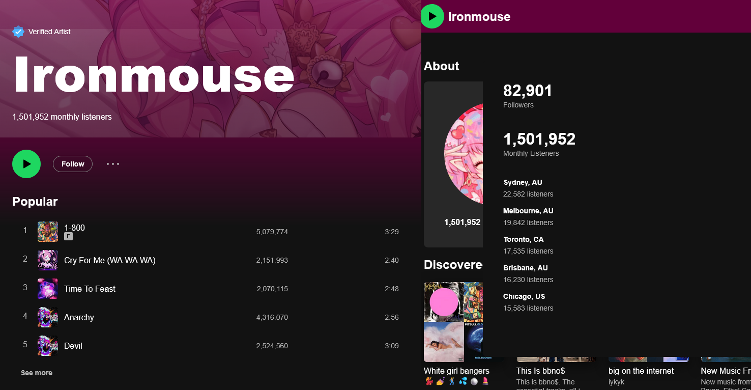 # of 100k streams last year: 58