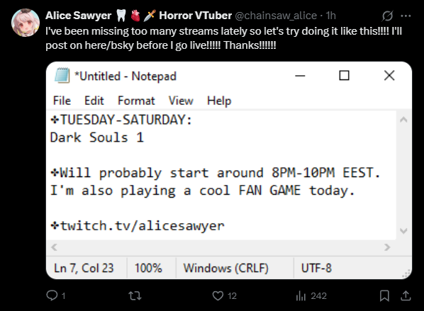 I like reading the little scenarios Oli puts in her going live notifications