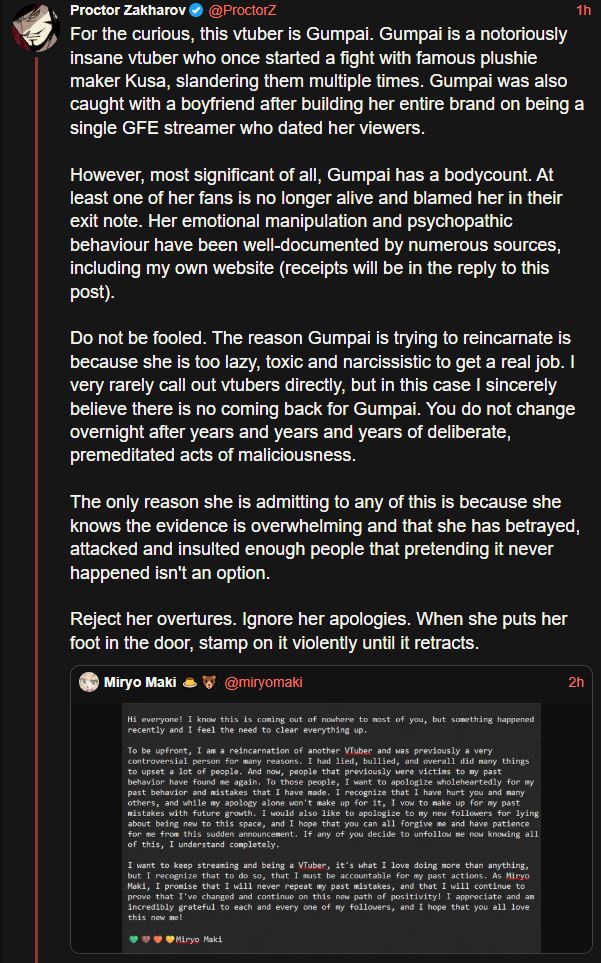 Look who is doxing VTubers and crying about someone reincarnating. Probably because this one is already groomed so he can't do it himself.