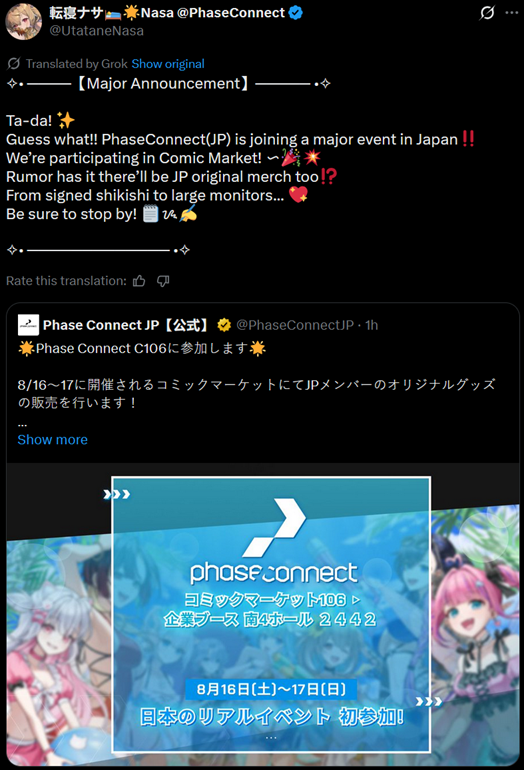 [339 / 70 / 1] 999KiB, 2033x3191, GkE7ruMa0AA1xR2.jpg View SameGoogleImgOpsiqdbSauceNAO Thread Reply Original Report Media View Same Google ImgOps iqdb SauceNAO Download /pcg/ - Phase Connect General Anonymous Wed 16 Jul 2025 05:26:18 No.102312061 View ViewReplyOriginalReport Quoted By: >>102312176 >>102312183 >>102312267 ▼ Phase Connect LinksOfficial Website: https://phase-connect.comOfficial Schedule: https://schedule.phase-connect.comOfficial Twitter: https://twitter.com/PhaseConnect | https://twitter.com/PhaseConnectJPOfficial Character References: https://rentry.org/pcgreferencesOfficial Twitch Archive Channels: https://rentry.org/pcgtwitcharchiveUnofficial Phase Connect Archives: https://rentry.org/pcgunofficialarchive––––––––––––––––––––––––––––––––––▼ Lia 鈴香アシェリア (EN)https://twitter.com/rinkouashelia | https://youtube.com/RinkouAshelia | https://twitch.tv/asheliarinkou▼ Utatane Nasa 転寝ナサ (JP)https://twitter.com/UtataneNasa | https://youtube.com/UtataneNasa | https://twitch.tv/utatanenasa▼ Hakushika Iori 白鹿いおり (JP + EN)https://twitter.com/hakushikaiori | https://youtube.com/HakushikaIori | https://twitch.tv/iorihakushika▼ Fujikura Uruka 藤倉ウルカ (EN)https://twitter.com/fujikurauruka | https://youtube.com/FujikuraUruka | https://twitch.tv/fujikurauruka▼ Shisui Michiru 紫翠みちる (JP)https://twitter.com/shisuimichiru | https://youtube.com/ShisuiMichiru | https://twitch.tv/michiru_shisui▼ Tenma Maemi 天満マエミ (EN + JP)https://twitter.com/tenmamaemi | https://youtube.com/TenmaMaemi | https://twitch.tv/tenma▼ Pipkin Pippa ピップキン・ピッパ (EN)https://twitter.com/pipkinpippa | https://youtube.com/PipkinPippa| https://twitch.tv/pippa––––––––––––––––––––––––––––––––––▼ Kaneko Lumi 金子瑠美 (EN)https://twitter.com/kaneko_lumi | https://youtube.com/KanekoLumi | https://twitch.tv/kanekolumi▼ Fuura Yuri ふうら百合 (EN) [Terminated]Archive: https://youtube.com/@TheNationalFuuraYuriArchive▼ Dizzy Dokuro 髑髏ディズィー (EN)https://twitter.com/dizzydokuro | https://youtube.com/@dizzydokuro | https://twitch.tv/dizzydokuro▼ Jelly Hoshiumi 星海ジェリー (EN)https://twitter.com/jellyhoshiumi | https://youtube.com/@jellyhoshiumi | https://twitch.tv/jellyhoshiumi▼ Ember Amane 天音エンバー (EN)https://twitter.com/emberamane | https://youtube.com/@EmberAmane | https://twitch.tv/emberamane▼ Clio Aite クリオ・アイテ (EN)https://twitter.com/ClioAite | https://youtube.com/@ClioAite | https://twitch.tv/clioaite▼ MariMari_EN マリマリ (EN)https://twitter.com/MARIMARI_EN | https://youtube.com/@MARIMARI_EN | https://twitch.tv/marimari_en▼ Eepy Sleepy イーピー・スリーピー (EN)https://twitter.com/EepySleepyCh | https://www.youtube.com/@EepySleepyCh | https://twitch.tv/EepySleepy––––––––––––––––––––––––––––––––––▼ Remilia Nephys レミリア・ネフィス (EN)https://twitter.com/Remilia_Nephys | https://youtube.com/RemiliaNephys | https://twitch.tv/remilianephys▼ Chisaka Airi 千坂アイリ (EN)https://twitter.com/ChisakaAiri | https://youtube.com/ChisakaAiri | https://twitch.tv/chisakaairi▼ Amanogawa Shiina 天ノ川しいな (EN)https://twitter.com/AmanogawaShiina | https://youtube.com/AmanogawaShiina | https://twitch.tv/amanogawashiina▼ Himemiya Rie 姫宮りえ (EN)https://twitter.com/HimemiyaRie | https://youtube.com/HimemiyaRie | https://twitch.tv/himemiyarie▼ Erina Makina エリナ・マキナ (EN)https://twitter.com/ErinaMakina | https://youtube.com/ErinaMakina | https://twitch.tv/erinamakina▼ Komachi Panko 小町ぱんこ (EN)https://twitter.com/komachipanko | https://youtube.com/KomachiPanko | https://twitch.tv/komachipanko––––––––––––––––––––––––––––––––––▼ Runie Ruse ルニ・ルーズ (EN)https://twitter.com/RunieRuse | https://youtube.com/@RunieRuse | https://twitch.tv/RunieRuse▼ Eimi Isami 勇エイミ (EN)https://twitter.com/eimiisami | https://youtube.com/@eimiisami | https://twitch.tv/eimiisami▼ Muu Muyu むうむゆ (EN)https://twitter.com/Muu_Muyu | https://youtube.com/@MuuMuyu| https://twitch.tv/MuuMuyu▼ Hikanari Hina 光鳴ひな (EN)https://twitter.com/HikanariHina | https://youtube.com/@HikanariHina | https://twitch.tv/HikanariHina▼ Saya Sairroxs サヤ・サイロクサス (EN) [Hort]https://twitter.com/sayasairroxs | https://youtube.com/@sayasairroxs | https://twitch.tv/sayasairroxs––––––––––––––––––––––––––––––––––▼ Kannagi Loki 巫ロキ (JP)https://twitter.com/kannagiloki | https://youtube.com/@kannagiloki |▼ Kokoromo Memory 恋衣めもり (JP)https://twitter.com/kokoromomemory | https://youtube.com/@kokoromomemory_ | https://twitch.tv/kokoromomemory▼ Gram Pico 倉夢ぴこ (JP)https://twitter.com/grampico_ | https://youtube.com/@grampico | https://twitch.tv/grampico▼ Ayase Yuu 絢世ユウ (JP)https://twitter.com/ayaseyuuu | https://youtube.com/@ayaseyuu | https://twitch.tv/ayaseyuu_▼ Kaminari Clara 歌美鳴クララ (EN + JP)https://twitter.com/kaminariclara_ | https://youtube.com/@kaminariclara | https://twitch.tv/kaminariclaraPrevious Thread: >>102307520