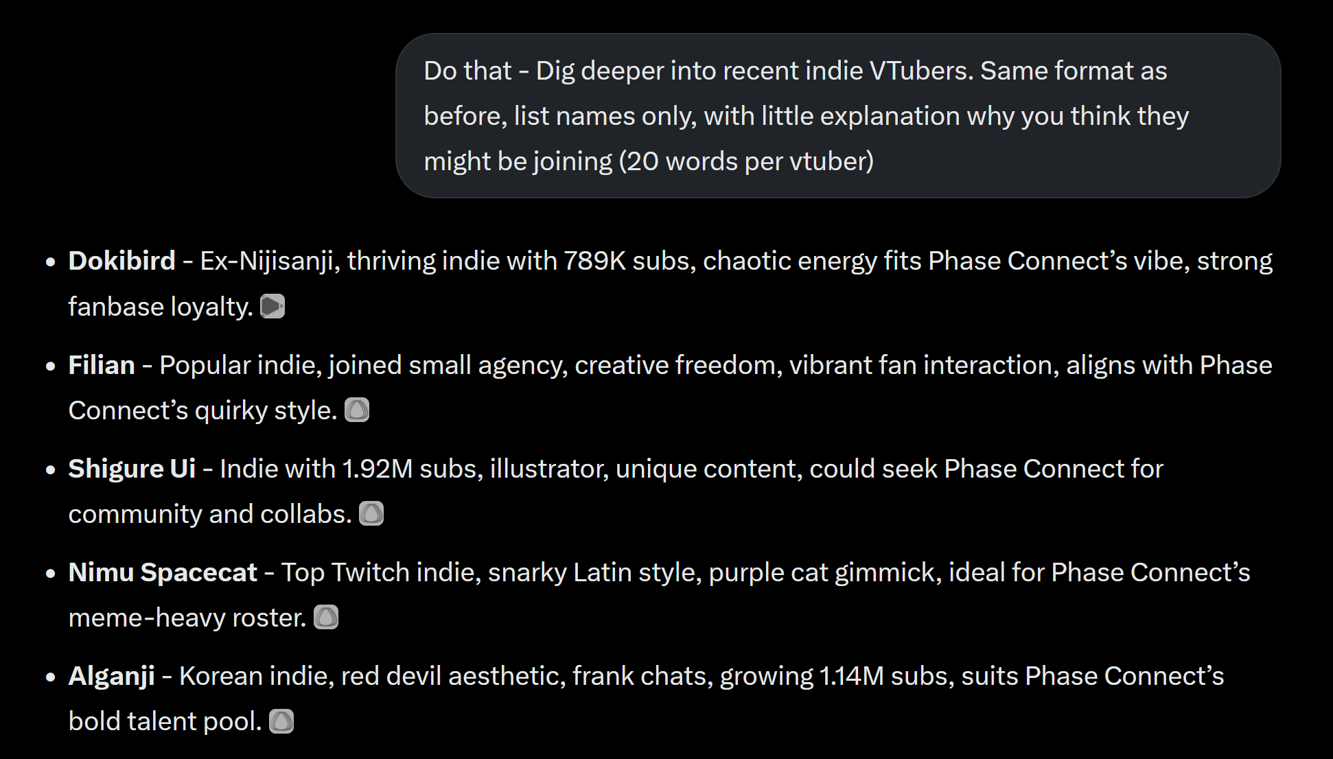 [440 / 94 / 1] 202KiB, 1237x963, GvgFBDfXMAAQMY8.jpg View SameGoogleImgOpsiqdbSauceNAO Thread Reply Original Report Media View Same Google ImgOps iqdb SauceNAO Download /pcg/ - Phase Connect General Anonymous Thu 17 Jul 2025 19:21:16 No.102353043 View ViewReplyOriginalReport Quoted By: ▼ Phase Connect LinksOfficial Website: https://phase-connect.comOfficial Schedule: https://schedule.phase-connect.comOfficial Twitter: https://twitter.com/PhaseConnect | https://twitter.com/PhaseConnectJPOfficial Character References: https://rentry.org/pcgreferencesOfficial Twitch Archive Channels: https://rentry.org/pcgtwitcharchiveUnofficial Phase Connect Archives: https://rentry.org/pcgunofficialarchive––––––––––––––––––––––––––––––––––▼ Lia 鈴香アシェリア (EN)https://twitter.com/rinkouashelia | https://youtube.com/RinkouAshelia | https://twitch.tv/asheliarinkou▼ Utatane Nasa 転寝ナサ (JP)https://twitter.com/UtataneNasa | https://youtube.com/UtataneNasa | https://twitch.tv/utatanenasa▼ Hakushika Iori 白鹿いおり (JP + EN)https://twitter.com/hakushikaiori | https://youtube.com/HakushikaIori | https://twitch.tv/iorihakushika▼ Fujikura Uruka 藤倉ウルカ (EN)https://twitter.com/fujikurauruka | https://youtube.com/FujikuraUruka | https://twitch.tv/fujikurauruka▼ Shisui Michiru 紫翠みちる (JP)https://twitter.com/shisuimichiru | https://youtube.com/ShisuiMichiru | https://twitch.tv/michiru_shisui▼ Tenma Maemi 天満マエミ (EN + JP)https://twitter.com/tenmamaemi | https://youtube.com/TenmaMaemi | https://twitch.tv/tenma▼ Pipkin Pippa ピップキン・ピッパ (EN)https://twitter.com/pipkinpippa | https://youtube.com/PipkinPippa| https://twitch.tv/pippa––––––––––––––––––––––––––––––––––▼ Kaneko Lumi 金子瑠美 (EN)https://twitter.com/kaneko_lumi | https://youtube.com/KanekoLumi | https://twitch.tv/kanekolumi▼ Fuura Yuri ふうら百合 (EN) [Terminated]Archive: https://youtube.com/@TheNationalFuuraYuriArchive▼ Dizzy Dokuro 髑髏ディズィー (EN)https://twitter.com/dizzydokuro | https://youtube.com/@dizzydokuro | https://twitch.tv/dizzydokuro▼ Jelly Hoshiumi 星海ジェリー (EN)https://twitter.com/jellyhoshiumi | https://youtube.com/@jellyhoshiumi | https://twitch.tv/jellyhoshiumi▼ Ember Amane 天音エンバー (EN)https://twitter.com/emberamane | https://youtube.com/@EmberAmane | https://twitch.tv/emberamane▼ Clio Aite クリオ・アイテ (EN)https://twitter.com/ClioAite | https://youtube.com/@ClioAite | https://twitch.tv/clioaite▼ MariMari_EN マリマリ (EN)https://twitter.com/MARIMARI_EN | https://youtube.com/@MARIMARI_EN | https://twitch.tv/marimari_en▼ Eepy Sleepy イーピー・スリーピー (EN)https://twitter.com/EepySleepyCh | https://www.youtube.com/@EepySleepyCh | https://twitch.tv/EepySleepy––––––––––––––––––––––––––––––––––▼ Remilia Nephys レミリア・ネフィス (EN)https://twitter.com/Remilia_Nephys | https://youtube.com/RemiliaNephys | https://twitch.tv/remilianephys▼ Chisaka Airi 千坂アイリ (EN)https://twitter.com/ChisakaAiri | https://youtube.com/ChisakaAiri | https://twitch.tv/chisakaairi▼ Amanogawa Shiina 天ノ川しいな (EN)https://twitter.com/AmanogawaShiina | https://youtube.com/AmanogawaShiina | https://twitch.tv/amanogawashiina▼ Himemiya Rie 姫宮りえ (EN)https://twitter.com/HimemiyaRie | https://youtube.com/HimemiyaRie | https://twitch.tv/himemiyarie▼ Erina Makina エリナ・マキナ (EN)https://twitter.com/ErinaMakina | https://youtube.com/ErinaMakina | https://twitch.tv/erinamakina▼ Komachi Panko 小町ぱんこ (EN)https://twitter.com/komachipanko | https://youtube.com/KomachiPanko | https://twitch.tv/komachipanko––––––––––––––––––––––––––––––––––▼ Runie Ruse ルニ・ルーズ (EN)https://twitter.com/RunieRuse | https://youtube.com/@RunieRuse | https://twitch.tv/RunieRuse▼ Eimi Isami 勇エイミ (EN)https://twitter.com/eimiisami | https://youtube.com/@eimiisami | https://twitch.tv/eimiisami▼ Muu Muyu むうむゆ (EN)https://twitter.com/Muu_Muyu | https://youtube.com/@MuuMuyu| https://twitch.tv/MuuMuyu▼ Hikanari Hina 光鳴ひな (EN)https://twitter.com/HikanariHina | https://youtube.com/@HikanariHina | https://twitch.tv/HikanariHina▼ Saya Sairroxs サヤ・サイロクサス (EN) [Hort]https://twitter.com/sayasairroxs | https://youtube.com/@sayasairroxs | https://twitch.tv/sayasairroxs––––––––––––––––––––––––––––––––––▼ Kannagi Loki 巫ロキ (JP)https://twitter.com/kannagiloki | https://youtube.com/@kannagiloki |▼ Kokoromo Memory 恋衣めもり (JP)https://twitter.com/kokoromomemory | https://youtube.com/@kokoromomemory_ | https://twitch.tv/kokoromomemory▼ Gram Pico 倉夢ぴこ (JP)https://twitter.com/grampico_ | https://youtube.com/@grampico | https://twitch.tv/grampico▼ Ayase Yuu 絢世ユウ (JP)https://twitter.com/ayaseyuuu | https://youtube.com/@ayaseyuu | https://twitch.tv/ayaseyuu_▼ Kaminari Clara 歌美鳴クララ (EN + JP)https://twitter.com/kaminariclara_ | https://youtube.com/@kaminariclara | https://twitch.tv/kaminariclaraPrevious Thread: >>102345289