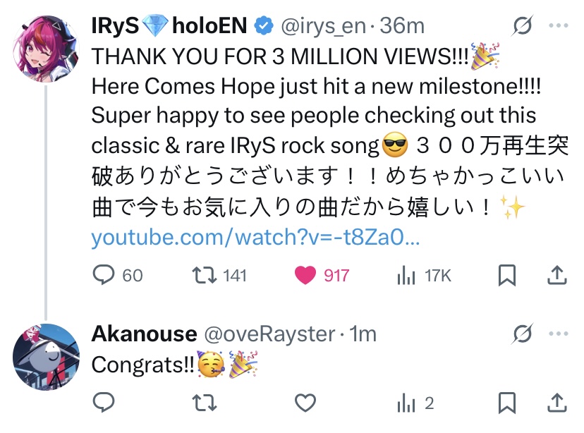 >IRyS Status/ Milestones / Karaoke / SCs