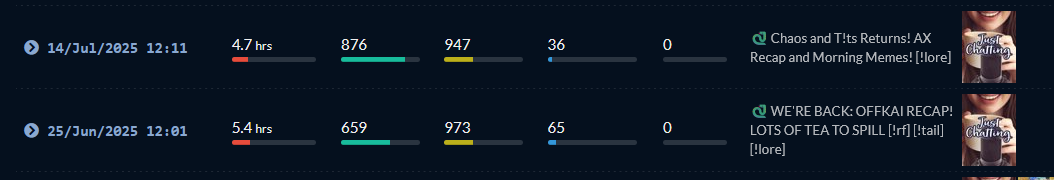Geega is still LIVE! And is still hanging out in Grounded 2 with tomato lime and boon. But now there are even MORE options. Ama is also LIVE! And is back on that FF16 grind and she's loving it. Finally a certain fat bitch is also live to grace us with her presence once again. That's all that's happening at the moment so pick a stream and keep things comfy and civil by ignoring and especially reporting bait, and being excellent to each other.