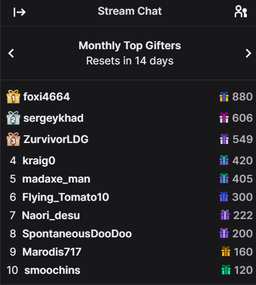 8: https://twitch.tv/Silvervale (4,354) *combined