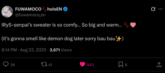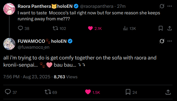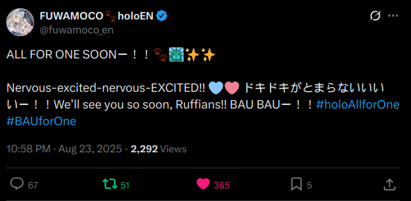 1x: FUWAMOCO, Hololive English, Raora, Cecilia, Bandage, Nerissa, Kronii, Nimi