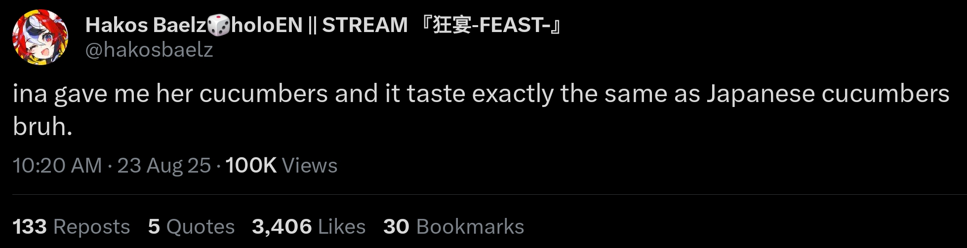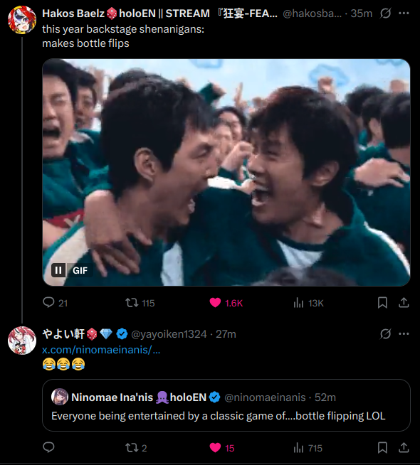Sameko Saba becomes the second talent to win two (or more) consecutive Golds in one month, the first one being Koseki Bijou. She also becomes the second talent to win three Golds in this month, the first one being Mori Calliope.
