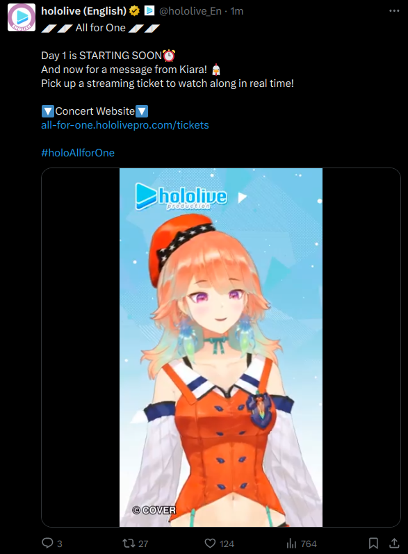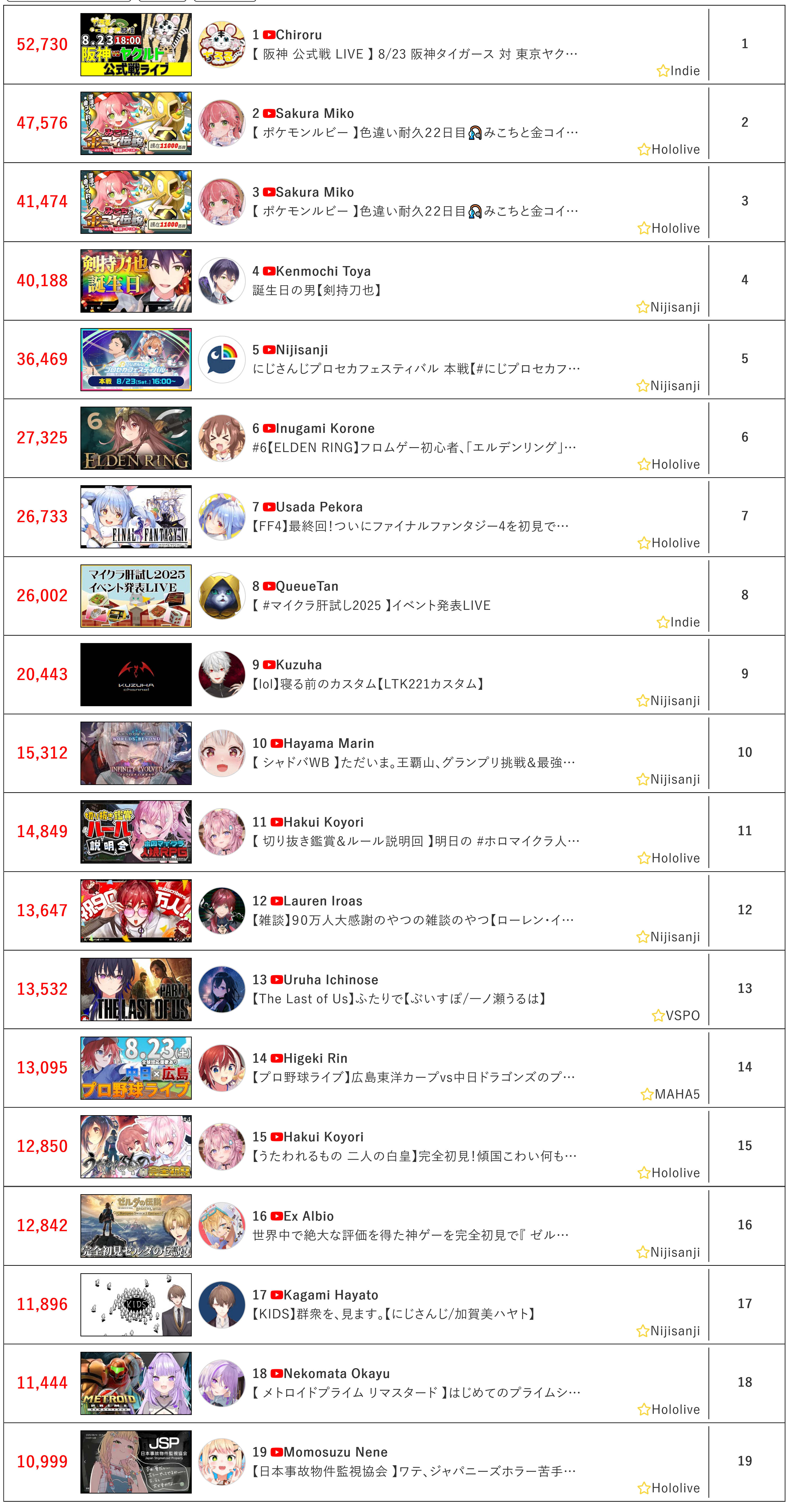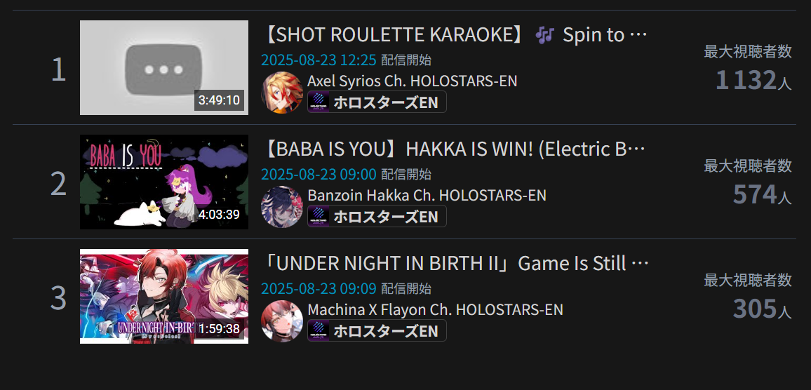 8/17 - Hololive English - Justice 3D Collab: 26,561