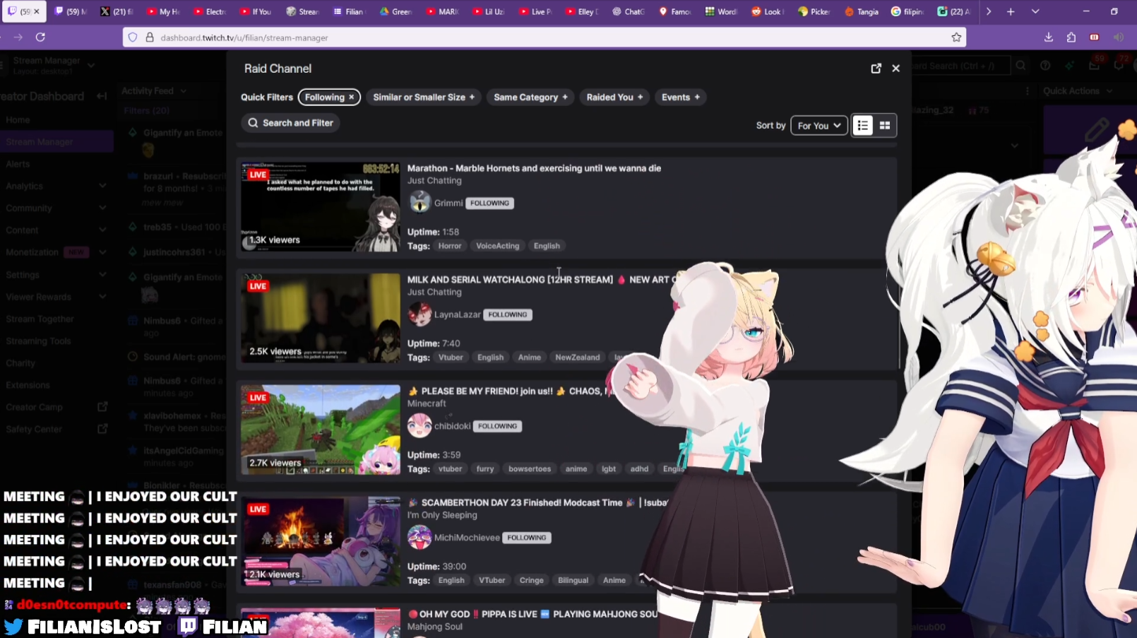 She is strong and athletic, she has that similar weird way of laughing that Filian has mentioned she has. She uses a vocabulary very similiar to what Filian uses. There is a weird video where she doesn't know that cows are all girls. (Filian loves cows). She has red hair just like Filian.