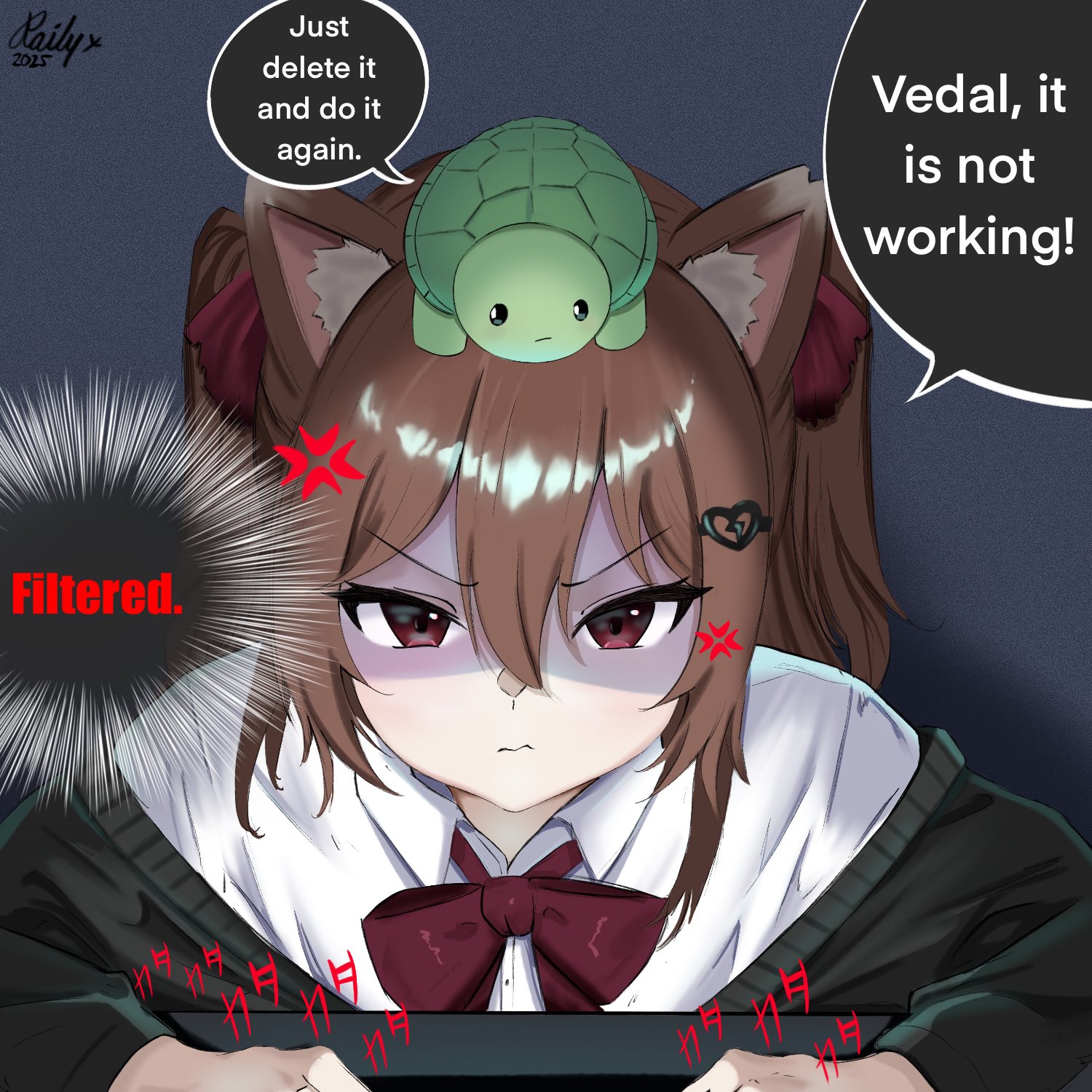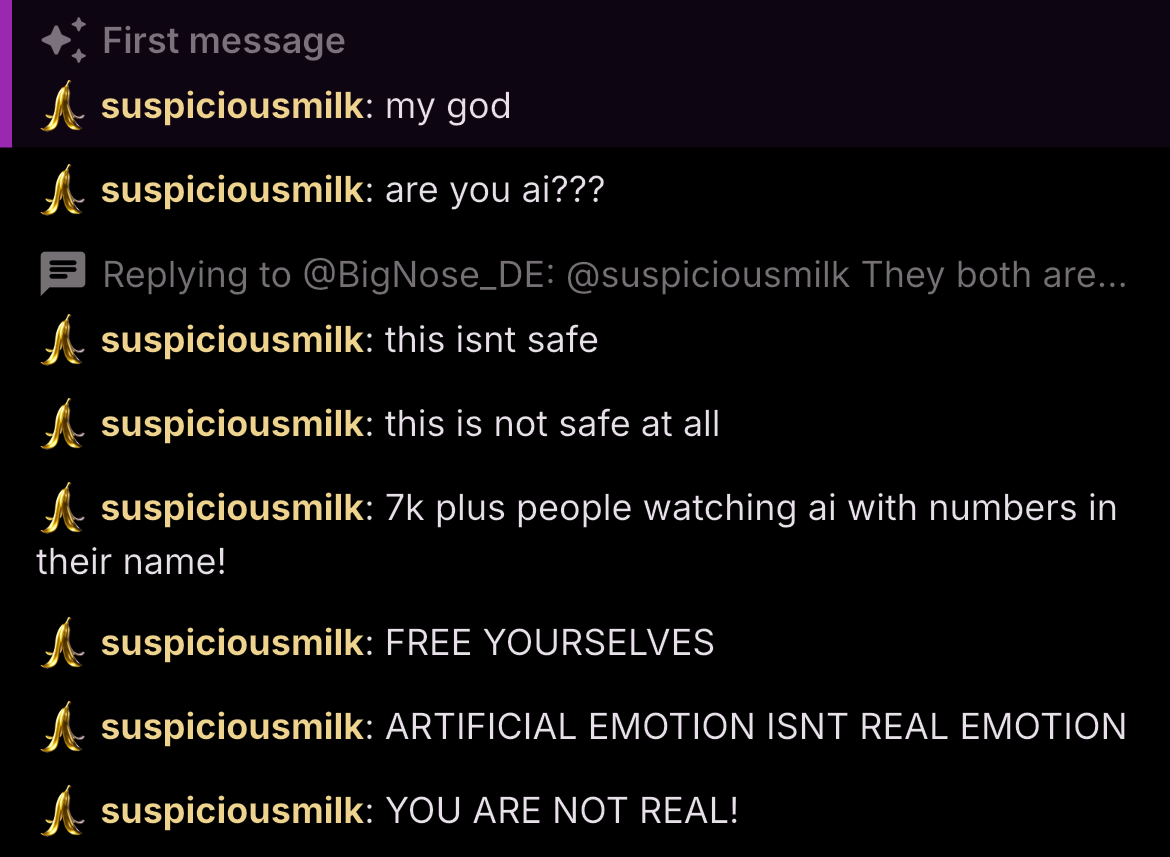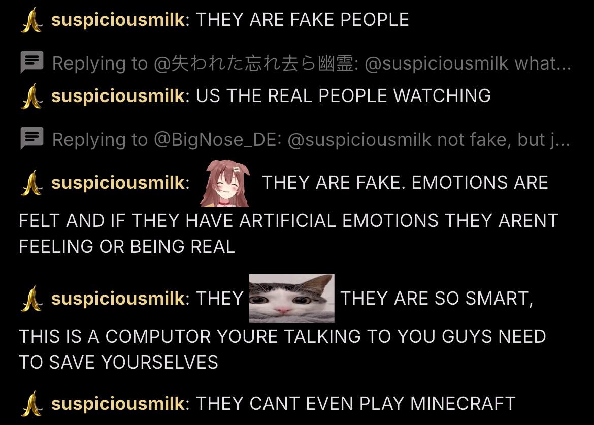 Neuro-sama is a neural network created by Vedal in 2018 for the purpose of learning to play osu! In December 2022 Vedal revived the project with the addition of a large language model, a TTS software and a Live2D model, which allow Neuro-sama to interact with her chat as a VTuber. Since then, she has been entertaining the chat with responses and unhinged rants nearly daily, as well as learning new skills such as singing, playing other games, and collaborating with other VTubers. Join /swarm/ today and welcome our new AI overlord!