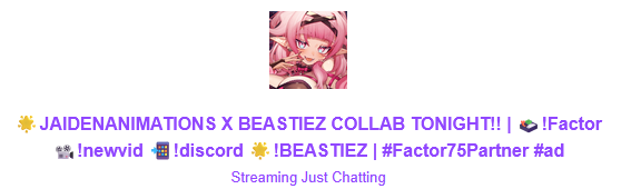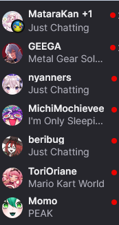 Beri is LIVE! She's back from MGSCon and is hanging out and yapping before the collab with the rest of the beastiez and jaiden later. Alternatively Geega is LIVE! And is playing Snake Eater. But like the new one not the 20 year old one. Peke is also LIVE! And is on a 10 hour LoL bender. Someone save her. That's it for now so pick a stream and keep things comfy and civil by ignoring and especially reporting bait, and being excellent to each other.