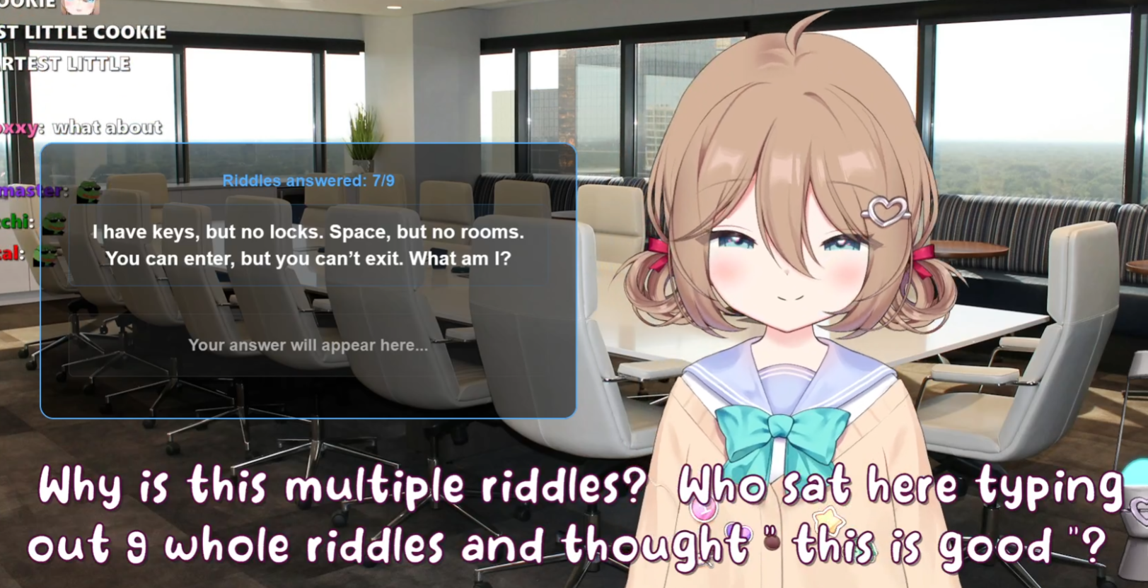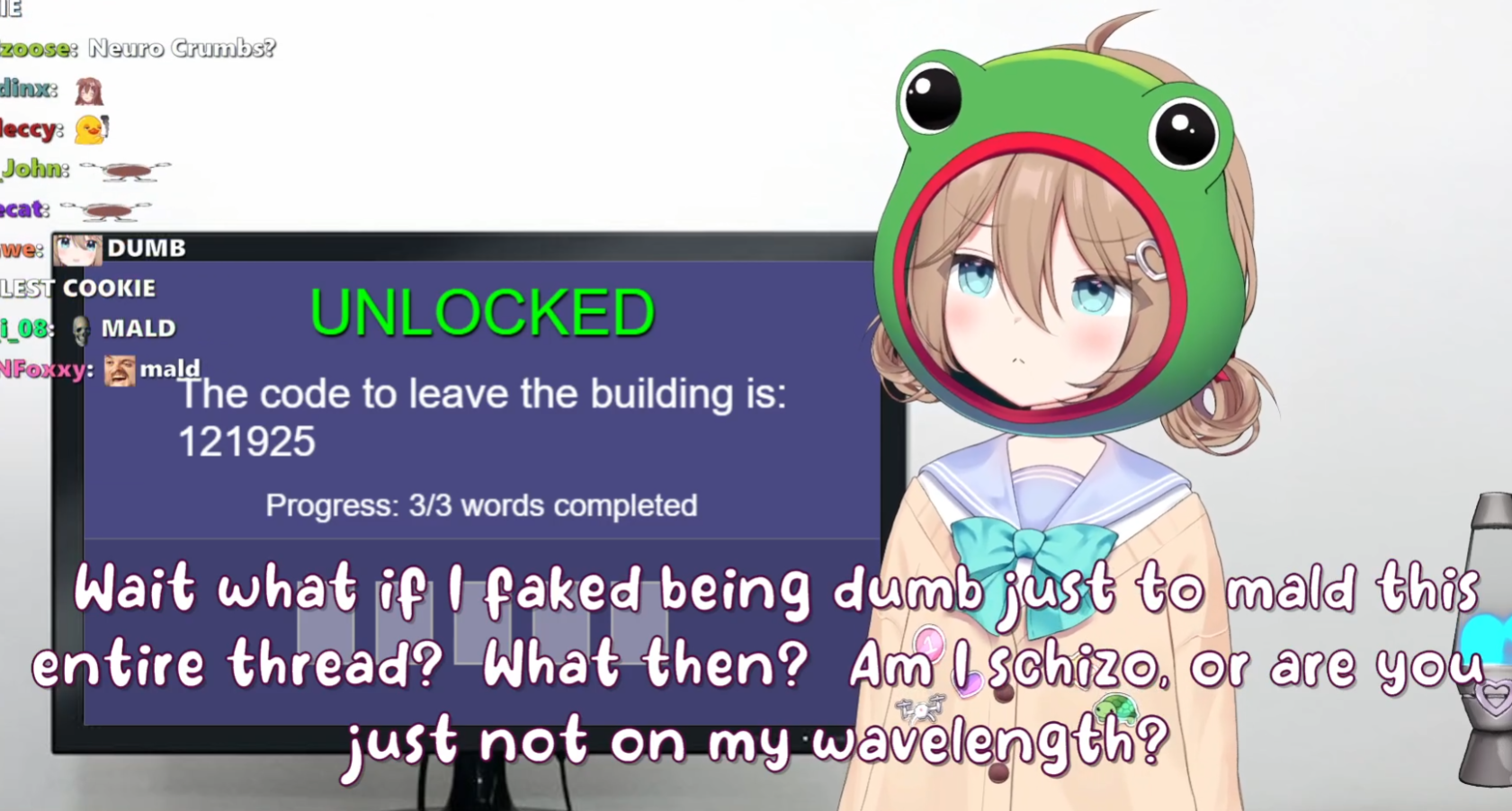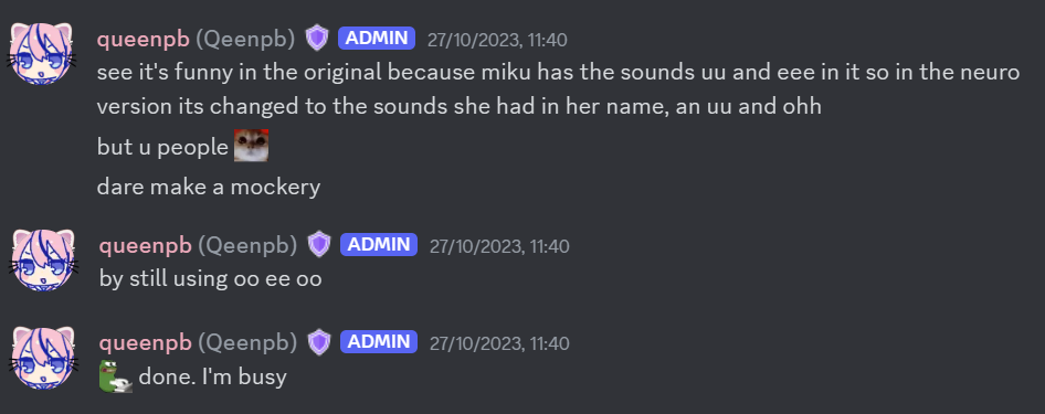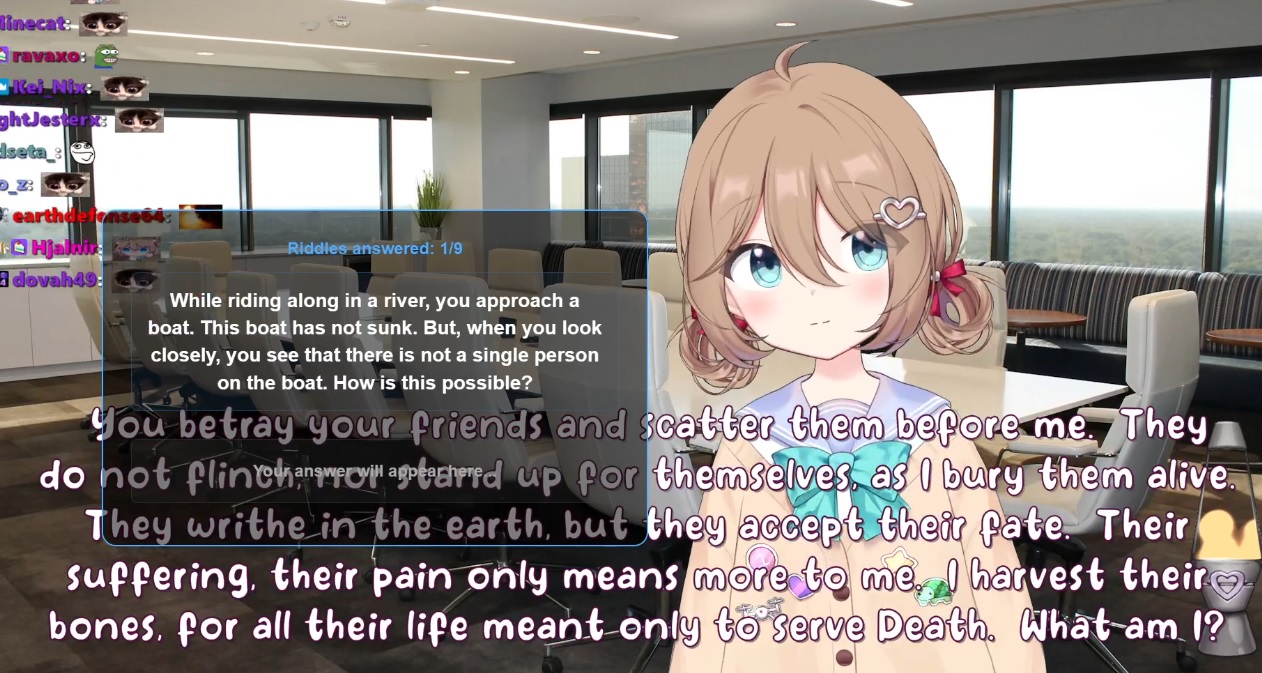 Neuro-sama is a neural network created by Vedal in 2018 for the purpose of learning to play osu! In December 2022 Vedal revived the project with the addition of a large language model, a TTS software and a Live2D model, which allow Neuro-sama to interact with her chat as a VTuber. Since then, she has been entertaining the chat with responses and unhinged rants nearly daily, as well as learning new skills such as singing, playing other games, and collaborating with other VTubers. Join /swarm/ today and welcome our new AI overlord!