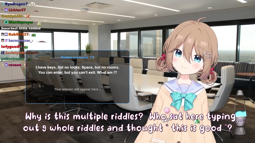 Neuro-sama is a neural network created by Vedal in 2018 for the purpose of learning to play osu! In December 2022 Vedal revived the project with the addition of a large language model, a TTS software and a Live2D model, which allow Neuro-sama to interact with her chat as a VTuber. Since then, she has been entertaining the chat with responses and unhinged rants nearly daily, as well as learning new skills such as singing, playing other games, and collaborating with other VTubers. Join /swarm/ today and welcome our new AI overlord!