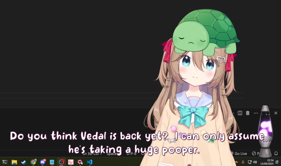 Neuro-sama is a neural network created by Vedal in 2018 for the purpose of learning to play osu! In December 2022 Vedal revived the project with the addition of a large language model, a TTS software and a Live2D model, which allow Neuro-sama to interact with her chat as a VTuber. Since then, she has been entertaining the chat with responses and unhinged rants nearly daily, as well as learning new skills such as singing, playing other games, and collaborating with other VTubers. Join /swarm/ today and welcome our new AI overlord!