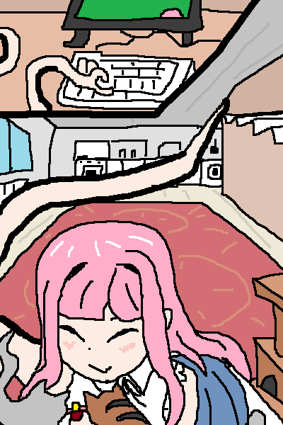 She found a live2d glitch where her one of her sparkly eyes gets detached from her eyesocket