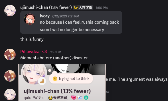 Seeing all this catty indie bitch drama really make your realize that Rushia wasn't that bad.