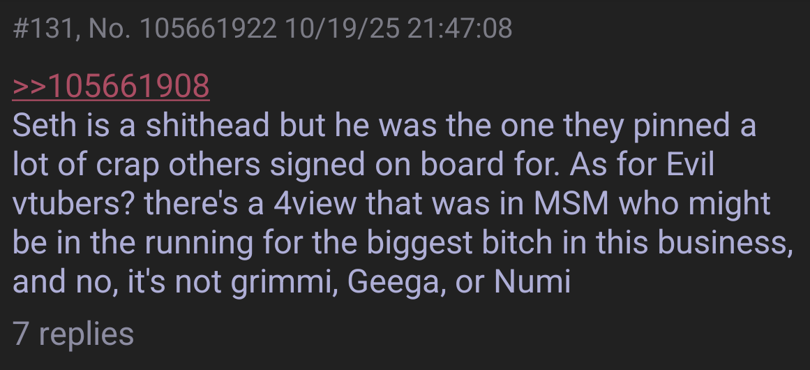 Large indie vtubers have more net fans, but they are outnumbered by 2views by the thousands. This is a thread for the VIP, regardless of what language they stream on.