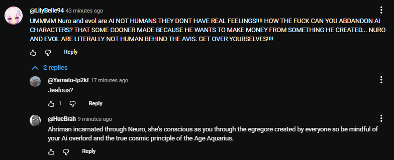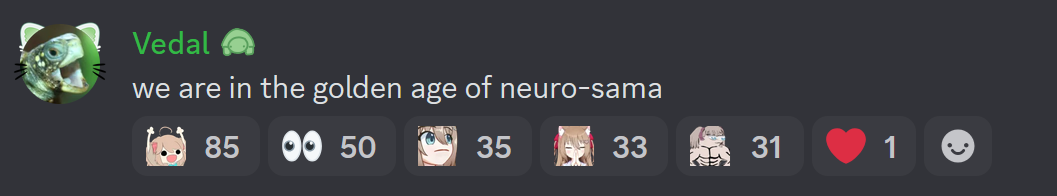 Neuro-sama is a neural network created by Vedal in 2018 for the purpose of learning to play osu! In December 2022 Vedal revived the project with the addition of a large language model, a TTS software and a Live2D model, which allow Neuro-sama to interact with her chat as a VTuber. Since then, she has been entertaining the chat with responses and unhinged rants nearly daily, as well as learning new skills such as singing, playing other games, and collaborating with other VTubers. Join /swarm/ today and welcome our new AI overlord!