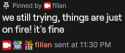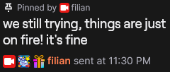 Filian collabs are like seasons, she will collab often with banyana for 2 weeks, then completely drop her to collab with Layna, then 2 weeks after she collabs with smug alana and some random russian vtubers.