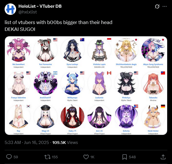 Large indie vtubers have more net fans, but they are outnumbered by 2views by the thousands. This is a thread for the VIP, regardless of what language they stream on.