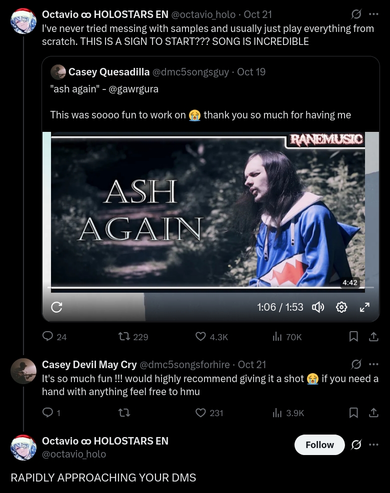 >>105846573Other than the early grindstone hype buff + new minecraft server hype (and she did everything she could to enforce an appeal to kaela's "hardcore gamer" viewerbase in order to snatch some paypig superchatters for herself, right after the collab ban lift), ENs do not get 5view without engine, raids, collab single pov, special or box events, unarchived streams or announcements.