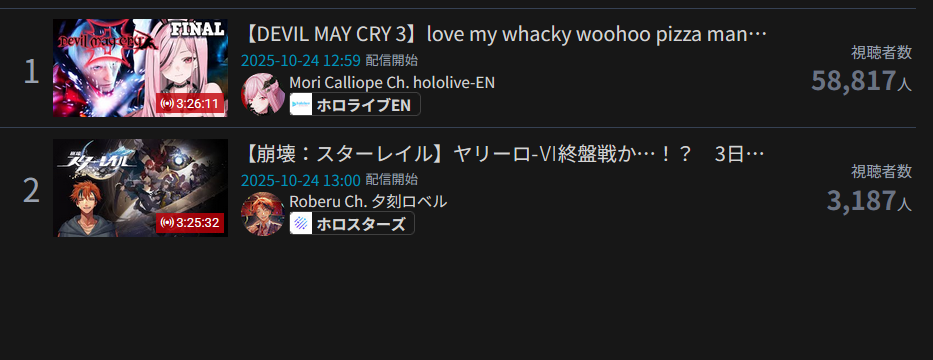 Any EN with more than 8k CCV in a multibranch holobox event overlapping several JPs streaming = engine.