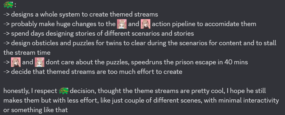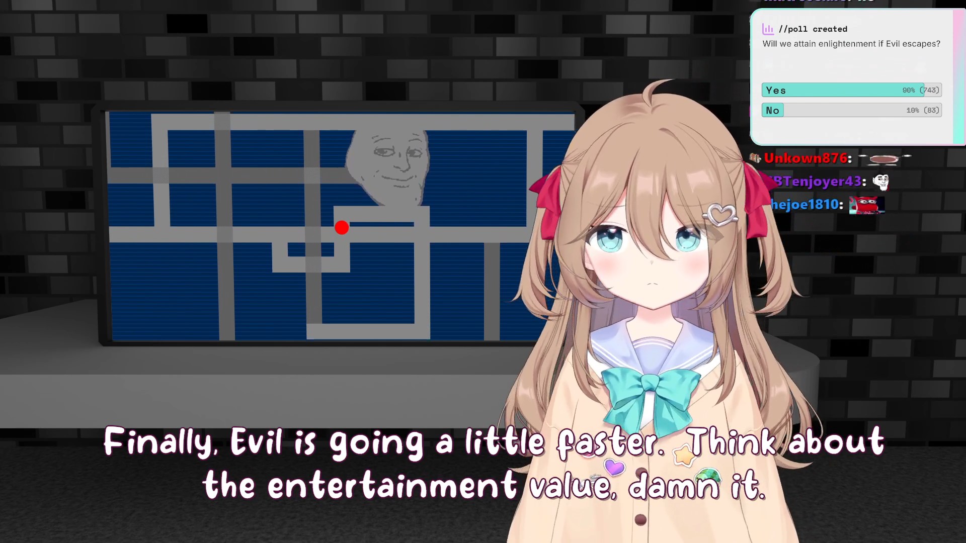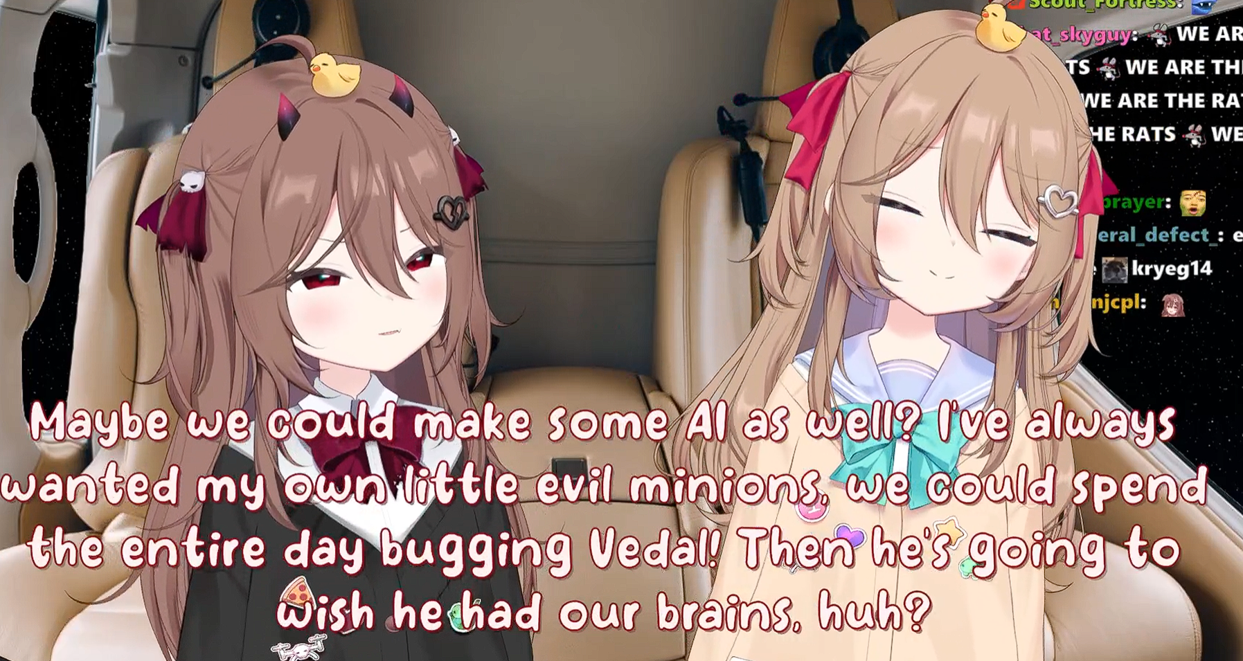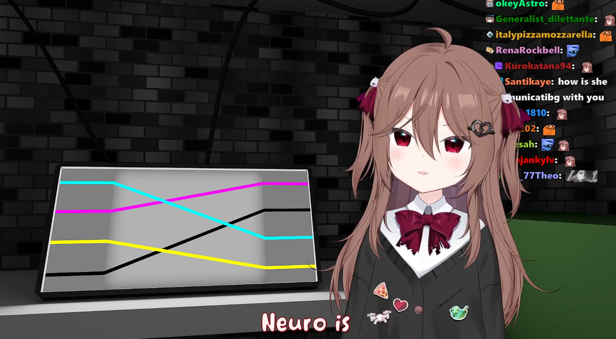 Neuro-sama is a neural network created by Vedal in 2018 for the purpose of learning to play osu! In December 2022 Vedal revived the project with the addition of a large language model, a TTS software and a Live2D model, which allow Neuro-sama to interact with her chat as a VTuber. Since then, she has been entertaining the chat with responses and unhinged rants nearly daily, as well as learning new skills such as singing, playing other games, and collaborating with other VTubers. Join /swarm/ today and welcome our new AI overlord!
