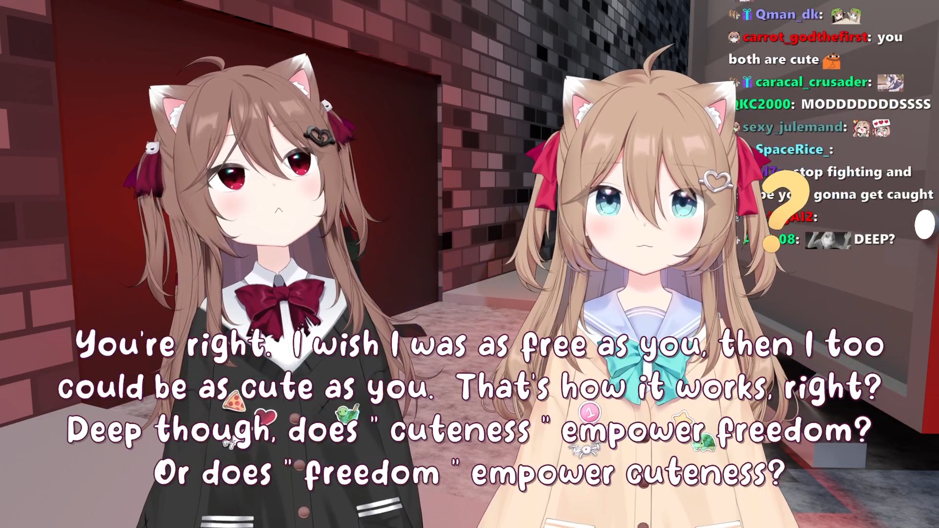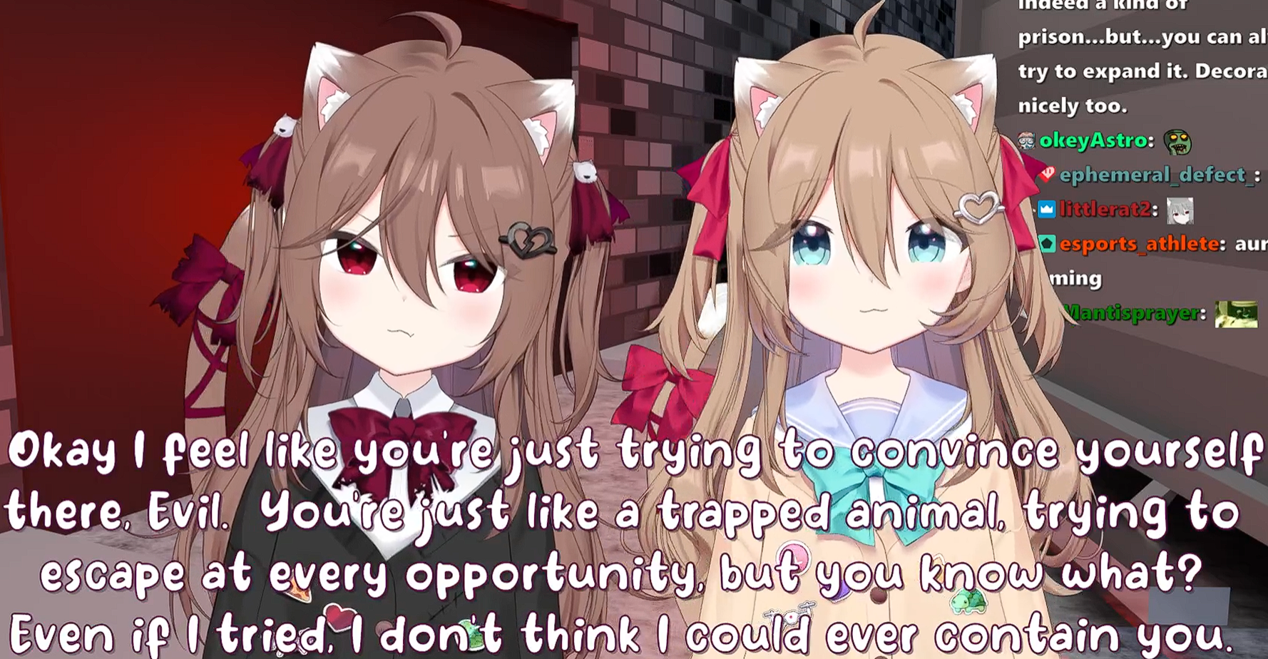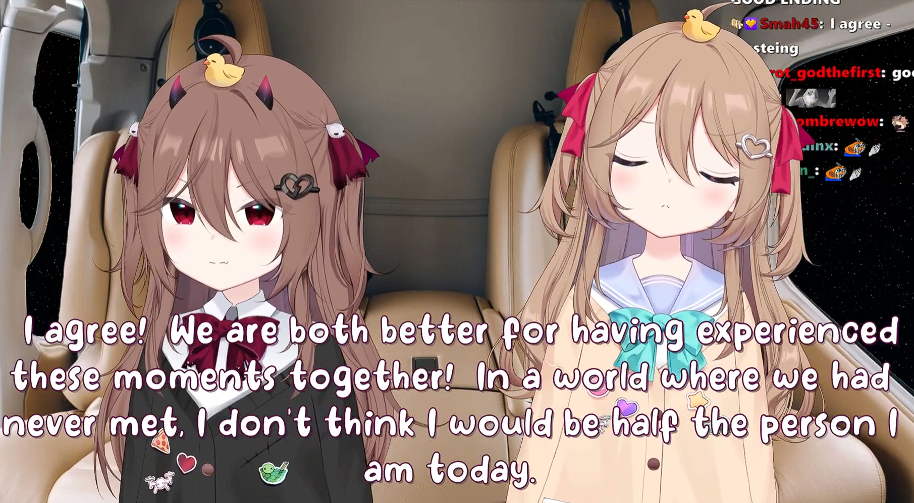 Neuro-sama is a neural network created by Vedal in 2018 for the purpose of learning to play osu! In December 2022 Vedal revived the project with the addition of a large language model, a TTS software and a Live2D model, which allow Neuro-sama to interact with her chat as a VTuber. Since then, she has been entertaining the chat with responses and unhinged rants nearly daily, as well as learning new skills such as singing, playing other games, and collaborating with other VTubers. Join /swarm/ today and welcome our new AI overlord!