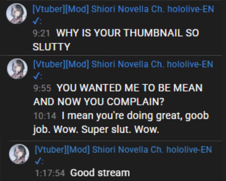 She has admitted to buying BL doujins in the past, but she walks it back when she sees that it’s not popular with guys on /here/. She always lies and adjusts her interests based on what she believes her audience would like, it is such pick-me behavior. I struggle to believe anything that she says because she has lied so often at Hololive. It feels like she wasn’t getting the female audience she expected, so she doubled down on doing content that would appeal to men… it is very disingenuous… she has no integrity at all.