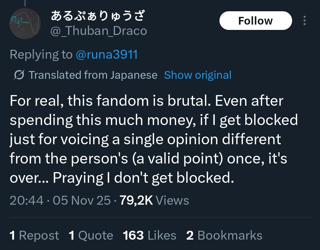 Before blocking, I look at people's profiles to determine whether the words came from fans. There were some people I barely didn't block, but I did block those who continued attacking. Please understand.