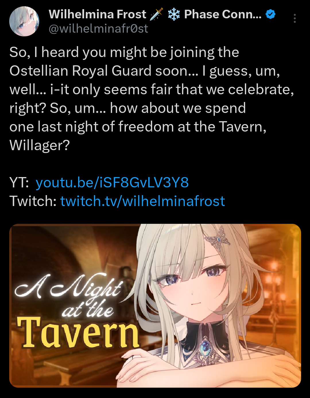 - Wilhelmina Frost | https://x.com/wilhelminafr0st | https://www.youtube.com/@wilhelminafrost | https://www.twitch.tv/wilhelminafrost