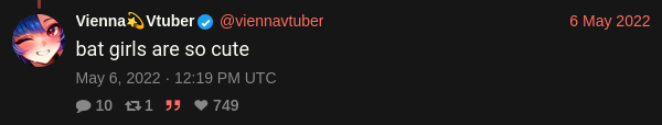 Large indie vtubers have more net fans, but they are outnumbered by 2views by the thousands. This is a thread for the VIP, regardless of what language they stream on.