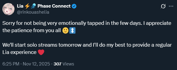 Schedule: https://x.com/rinkouashelia/status/1988097367661572509
